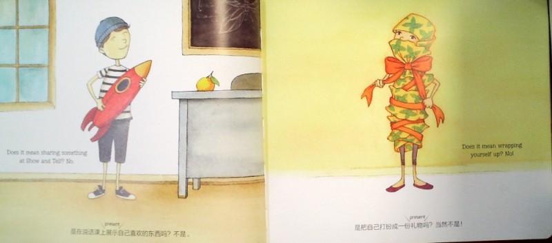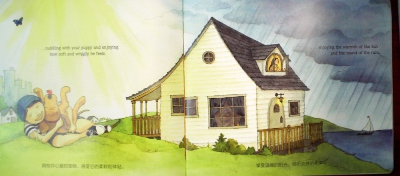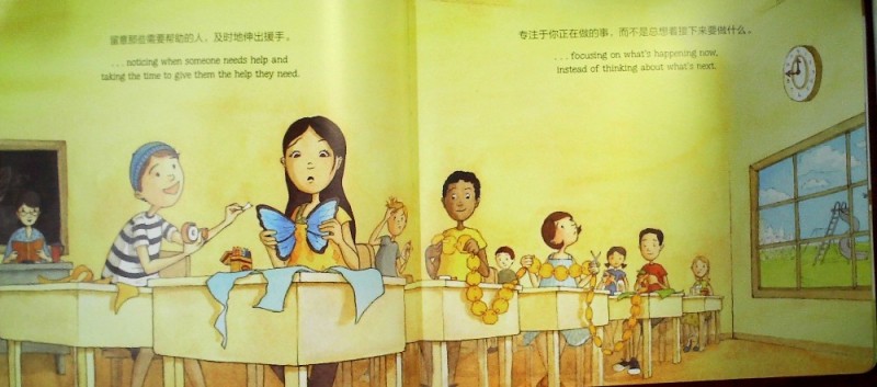 孩子越来越大,对世界充满了各种疑问,小时候的十万个为什么,现在的一些略带哲学意味的问题,让我有时候不知如何来解答学会爱世界(世界才会更爱你) 给孩子的人生解答书系列我收到的是 《什么是当下》 没翻开绘本之前,我自己对当下的理解是不追忆过去,不畅想未来,实实在在的活在现在,过去已经离你远去,在追忆不反思对你现在的生活一点用处都起不了。不虚无的憧憬未来,有理想有抱负诚然动人,但是光有想法却没有对这个理想付出实际的行动,理想最终只能沦落为空想,到头来一场空,只换来唏嘘一场。 ![]() 什么是“当下”? 是准时出现在课堂上吗?不是。 ![]() 是在说话课上展示自己喜欢的东西吗?不是。 是把自己打扮成一份礼物吗?当然不是。 ![]() 当下的意思是:当别人说话是,我们要认真的听。 ![]() 留意那些需要帮助的人,及时的伸出援手。 专注于你正在做的事,而不是宗想着接下来要做什么。 ![]() 珍惜自己所拥有的,及时别人的看起来更好。 耐心的排队等候。 ![]() 把每一次新体验都当做机遇和挑战。并懂得,我们就是在错误中学习和成长的。 ![]() 对家人和朋友心怀感激,并对他们表达你的谢意。 仔细品尝每一口美食。 ![]() 拥抱你心爱的宠物,感受它的柔软和体贴。 享受温暖的阳光,倾听欢快的雨声。 ![]() 感受脚趾间的细沙,欣赏连绵起伏的浪花,问问咸香的海草。(这段感觉翻译的特别美,原文写的也好feeling the sand between your toes,watching the rolling waves,smelling the briny seaweed.这个书放着等老大英语水平再高些可以让他学里面的英语措辞) 婷婷海鸥的明教,常常海风咸咸的味道。 ![]() 感受自然的呼吸节奏,呼~吸~呼~吸~让自己平静下来。 闭上双眼,静静的倾听内心的声音。 ![]() 当下意味着活在此时此刻。意味着你要认识到,明天是未知,昨天已经成为历史,而今天是一份礼物,因此我们才叫他“present” 所以,请告诉你的小伙伴什么是当下,庆让更多的人知道,如果人人都活在当下,我们的生活将会变得更丰富、更充实、更幸福! 这本绘本大坤和二坤都看过,大坤看完后问他有什么感想,他说不出所以然,就觉得讲的蛮有道理的。确实在我这个成年人来看,句句都是真理,字字都很经典,引人深思。 大坤进入三年级多了门英语,二坤进了大班后老师建议报学校的兴趣班,多了写字和拼音后,每天晚上饭后我就奔波于大坤和二坤的房间, 苦不堪言,心力交瘁。每天晚上为了舒缓压力开始刷韩剧。看完此书后,我觉得过去,没有太重视自己的学业,各种原因之下成了现在的居委会大妈,未来虽远,但觉得自己并不适合现在的工作。不少人看到我的第一眼觉得是老师。再考教师证不太可能,之前想过会计还有导游,想来都不适合我。前些年老公工作之余考了一建,实务差几分没过,后来说参保单位非建设类的不能考,本来萌生的小火苗立马被吹灭。这会正好听同事说起派遣合同,也许能打擦边球。看完此篇心灵鸡汤后,我下载视频,开始抽空学习起来。现在一个小小举动,也许会起蝴蝶反应~ 最后要感谢地带和化学工业出版社给了我和儿子们一次喝心灵鸡汤的机会。希望小伙子们能跟我一样都有所领悟 本作品未经作者许可不得转载,转载请征求作者意见。擅自转载使用,将保留追究其法律责任的权利! 个性签名