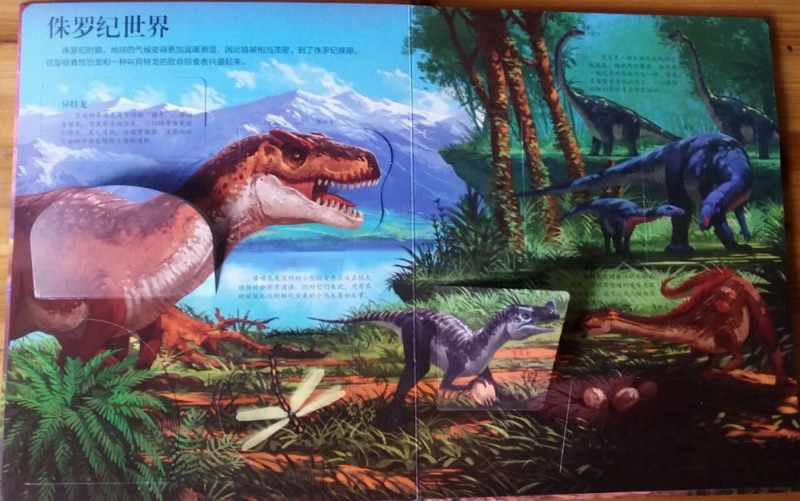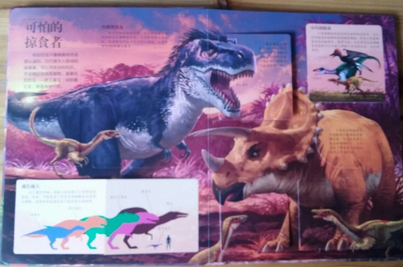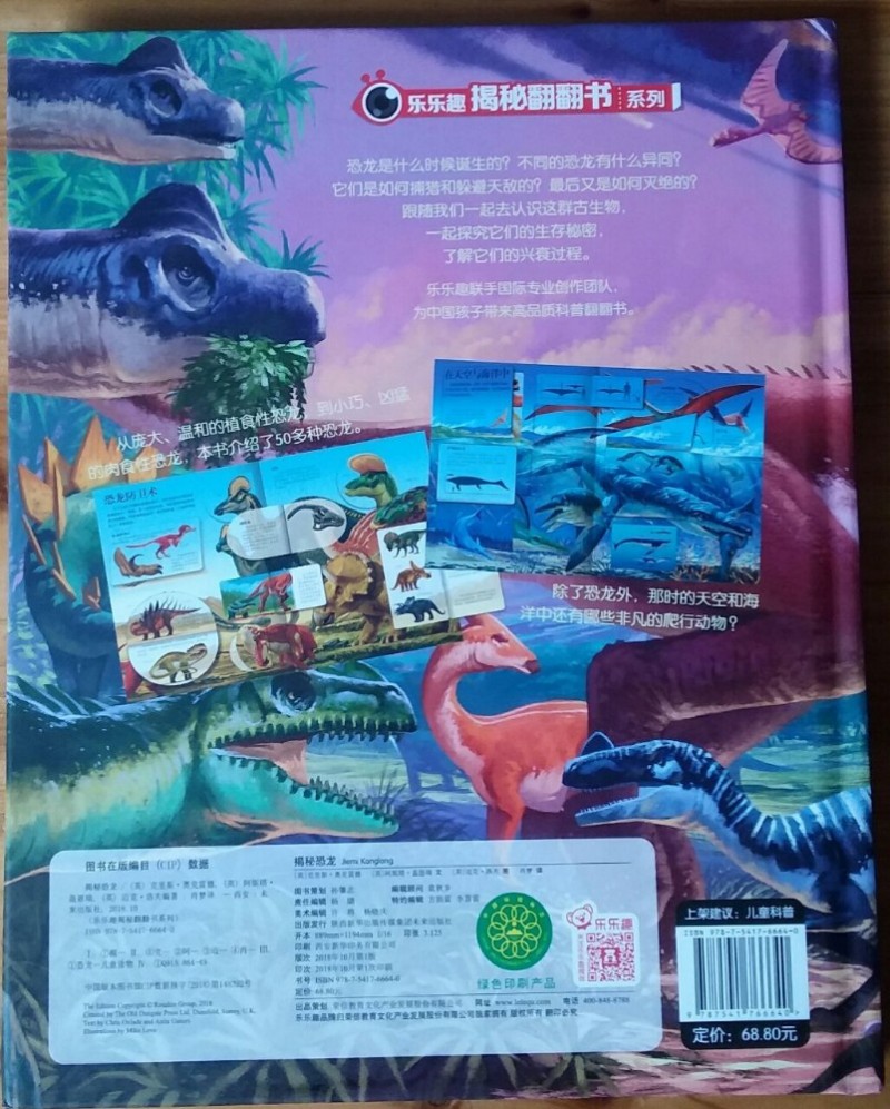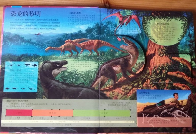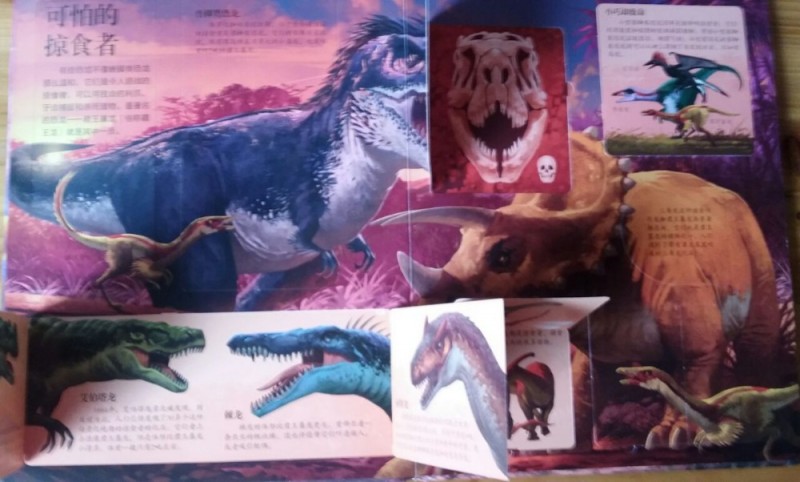 其实,这书挺棒的,内容丰富,寓教于乐,孩子可以通过认真的翻阅,体验本书的奇妙和乐趣,而精致的画面,完美的细节,每次阅读都会有新的发现,从而引发孩子阅读的兴趣。总而言之,这是一本充分调动你的兴趣,吸引你的眼球、满足你的好奇、拓展你的思维、激发你的想象、颠覆你的认知的科普互动翻翻书,还等什么?翻开来,让我们一起开始一段神秘的恐龙世界探索之旅吧。