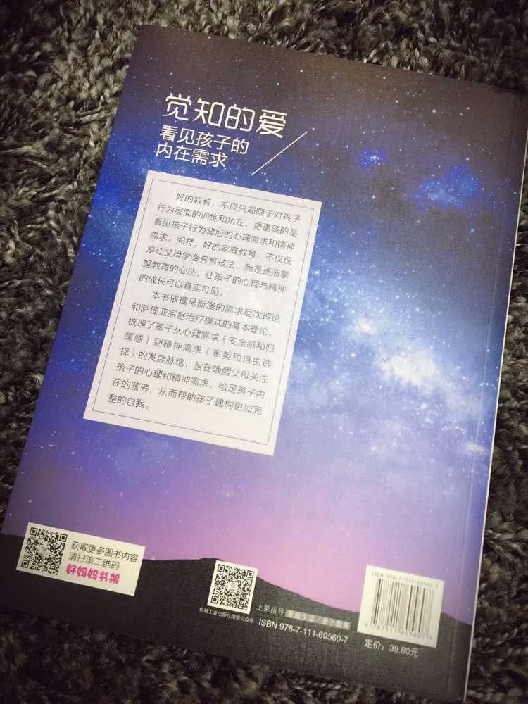 这一次收到的这本书——《觉知的爱》则详细诠释了对于孩子科学合理的的教育方式方法以及背后支撑它的理论 书中提出的核心观点便是: 好的教育,不应只是局限于对孩子的行为层面的训练和矫正 更重要的是看见孩子行为背后的心理需求和精神需求 这一点简直说到我心里去了 有时候,我真的搞不懂小斑马为什么要哭闹叛逆跟妈妈拧着来 但我隐约感受得到,在他不良行为的背后,一定是有什么被我忽略了