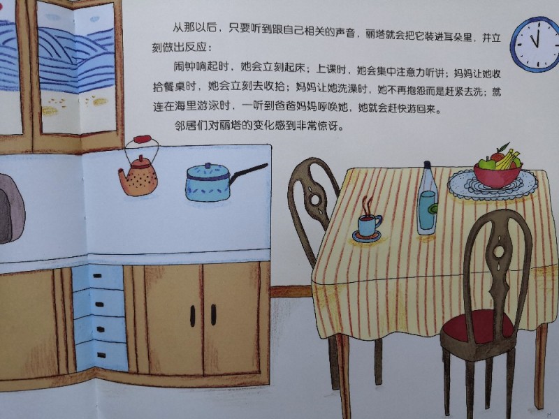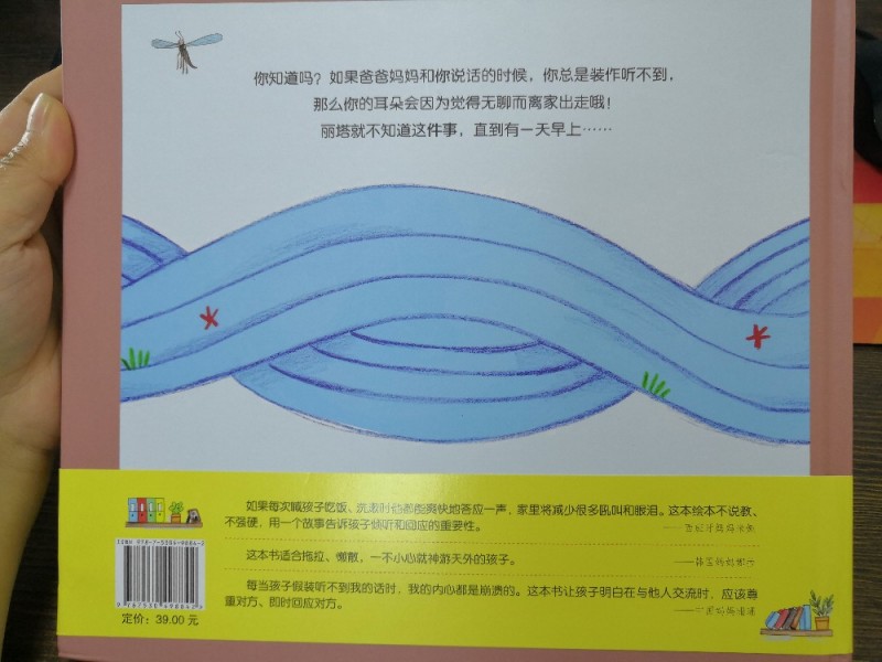这下子,小女孩明白了,从那以后,无论什么时候,只要有人喊人,她就立马给予回答,妈妈喊她,也是立刻行动,不再抱怨,不再当做么有听见,就这样她的耳朵回来的。这样的一个故事,真的是挺有意思的,也很有代入感,可以让我们的孩子去体会,他们平时是怎么做的,他们的耳朵会不会也不见了呀,算是给予一种心理暗示吧,让孩子反思自己平时的行为,久而久之,也是会去改正的,把别人的话都停在耳朵里,我觉得及时给出回应,也是对别人的一种尊重。