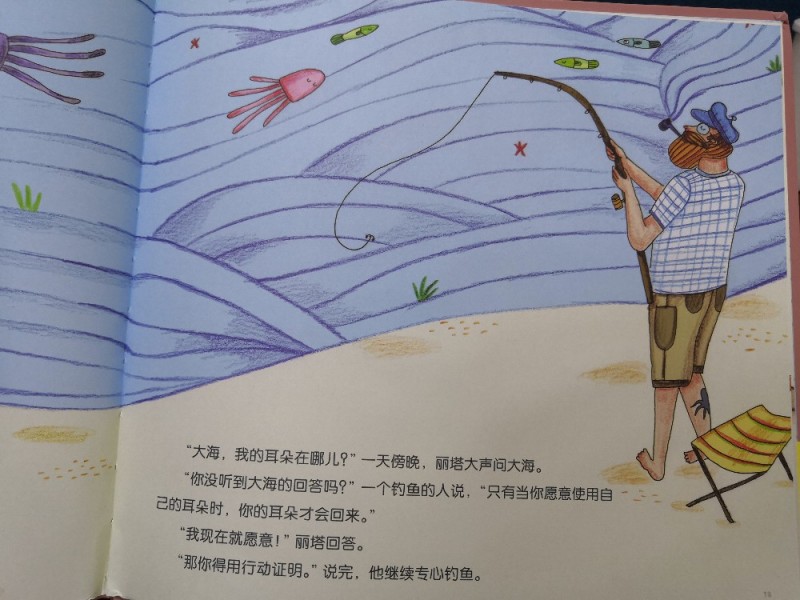 这是非常的着急的事情,“大海,我的耳朵在哪儿?”一天傍晚,她大声的问大海。“你没有听到大海的回答吗?”一个钓鱼的人说,“只有你愿意使用自己的耳朵时,你的耳朵才会回答。”小女孩表示愿意,钓鱼人告诉她,要用自己的行动证明。