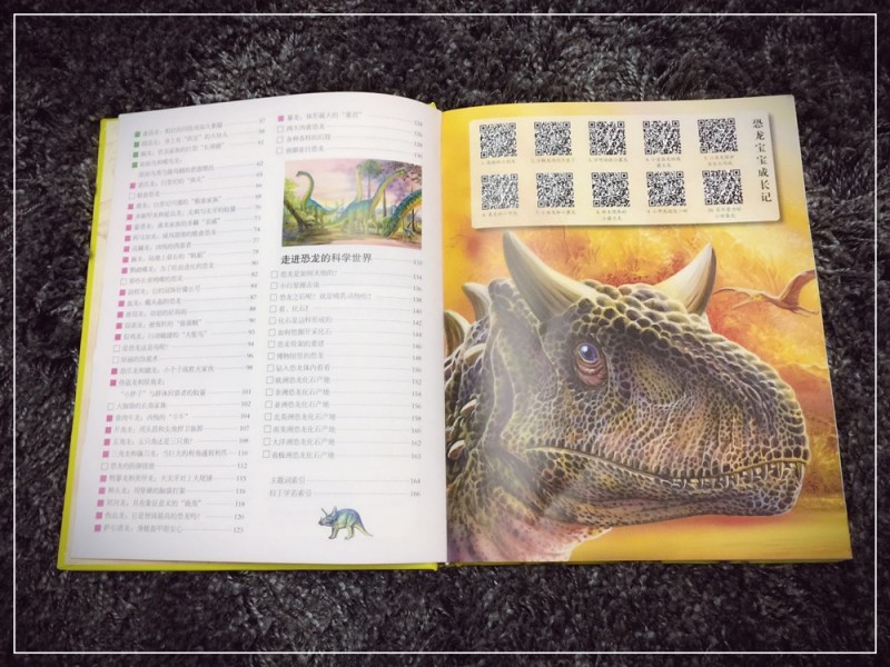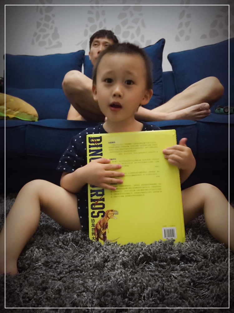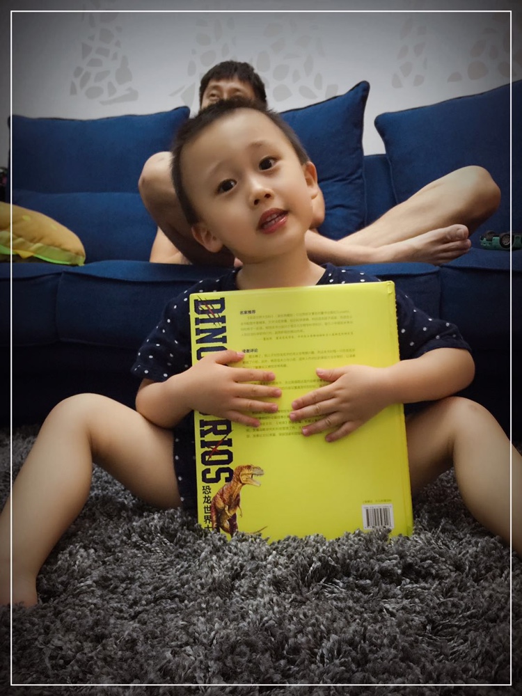 小斑马抱着书,配合妈妈拍照 爸爸则扫书中的二维码,配合先后出现的恐龙形象,播放不同的音视频! 这是因为,恐龙这个神奇又熟悉的话题 是我们家的最爱,没有之一!