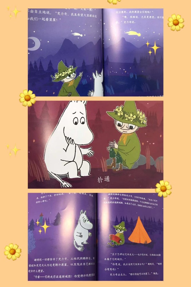 它会是星星吗?如果是,要许什么愿望呢?——姆明,这时候妈妈提示:“姆明,这是你的愿望,没有人能告诉你应该许什么愿望。”