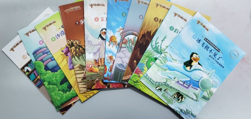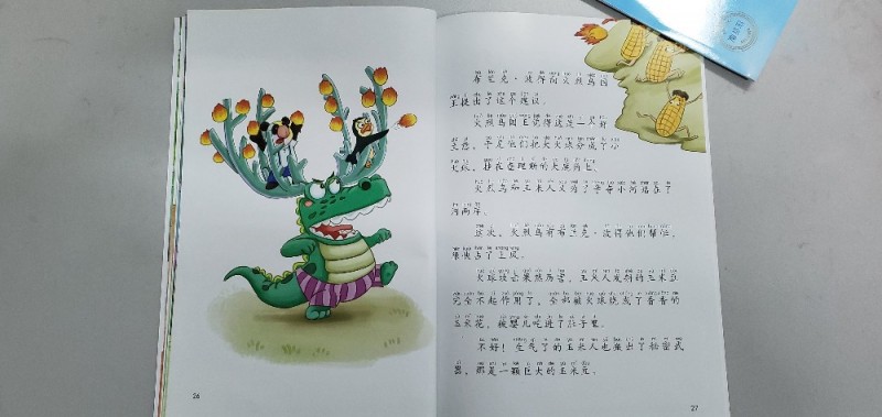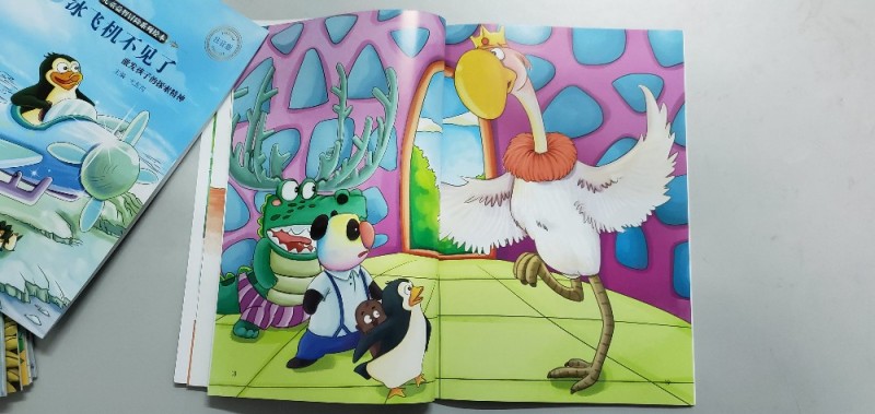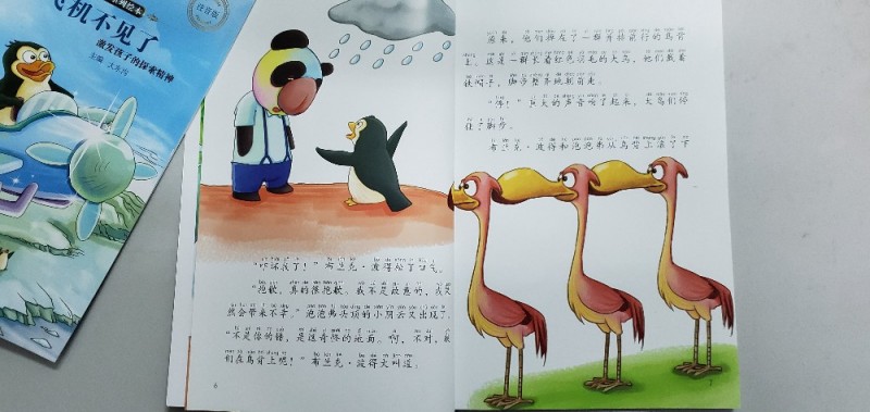 今天分享的是一套注音版的儿童故事《布兰克•波得的旅行》,这套书一共有十册。分别是第一册《冰飞机不见了》激发孩子的探索精神,第二册《彩色熊猫泡泡弗》是让孩子乐观的面对自身的缺陷。第三册《牡丹之心的传说》是让孩子鼓起前进的勇气。第四册是《海底蘑菇村庄》这本书是教会孩子发现自身的闪光点。第五册是《逃离大鸟窝》鲸鱼居然被鹰给抓走了,这个故事告诉我们遇到事情要智慧和勇气并存。第六个故事听名字就很有趣了,是《玉米豆豆火烈鸟》要学会理智的思考。第七个故事是《洞穴里的探险》,谁都曾经有梦想,只是一直去努力的人不多。这个故事教会孩子努力实现自己心中的梦想。第八个故事是《沙漠海的移动绿洲》这个故事是遇到欺凌也不要妥协,直面困难勇敢的去克服。第九个故事是《她是我妈妈》这个故事告诉我们做事情要有恒心。第十个故事《再见,小伙伴们》小伙伴们一起经历了那么多事情,大家获得了成长和快乐,朋友永远记在心间。 这次就先分享一下《玉米豆豆火烈鸟》吧,布兰克和泡泡弗顺着一根藤落到了地面,很奇怪的是“地面”为什么是软的呢?原来他们掉到了一群并排前行的鸟背上。这是一群红色的火烈鸟。鸟群突然一停他们两个这次真的摔在了硬硬的地面上。原来是队伍最前面出现了一条河,河对岸还站着跟火烈鸟差不多大小的玉米人。两队人为了河的归属权而争吵起来。话不投机就打起来了,火烈鸟把身上的羽毛抖向了玉米人,这羽毛就像一根根小箭一样射向了玉米人。玉米人也不甘示弱,把玉米豆砸向了火烈鸟。一颗玉米豆砸到了布兰克和小婴儿,小婴儿的哭声太响亮了,把两个队伍都吓跑了,布兰克和朋友来到了火烈鸟的国家。国王听说后很高兴并邀请他们到自己的城堡。国王希望布兰克他们帮忙赶走玉米人。作为知道牡丹之心的下落的交换条件,布兰克他们同意了。布兰克把大火球分成很多的小火球扔向了玉米人。火球把玉米人发射的玉米豆变成了香香的玉米花。后来玉米人也搬出了超级大的玉米豆,眼看小河就要遭殃了,但是被小婴儿的一泡尿给拯救了。火烈鸟和玉米人意识到小河的存在比属于谁更重要。所以他们一起保卫小河共同拥有。