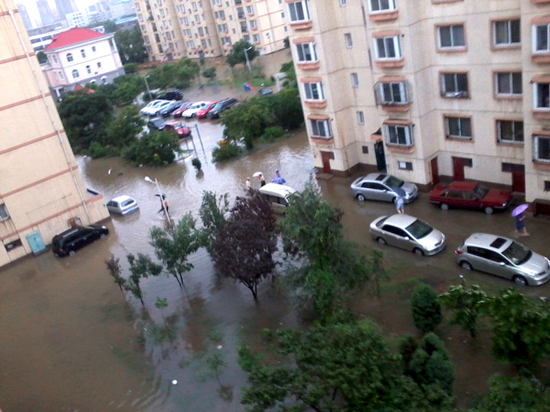 从7月底开始到现在为止,我们这的雨是陆陆续续的持续了将近一个礼拜的时间。昨天收到手机短信说是晚上有暴雨到大暴雨,并且发出了黄色预警,前两天还是蓝色预警呢!昨天的雨下的比前几日都大了很多,一直到今天早上6点多就听到楼下有人喊话,乱糟糟的。谦爸也跑了下去,看看自己的车咋样了。小区里地势底的地方的水已经过膝盖了,还有栋楼前的垃圾箱已经淹了大部分了。好在我家还是幸运,所在的楼属于地势高的地方,家里的车状况还好,由于昨天停在了位置相对高一点的地方。小区里有的车轮已经被水淹没了。