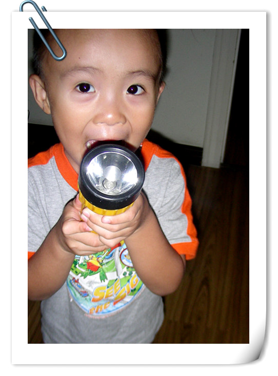 谦谦说:“把你的小嘴巴张开......” ![]() 都检查好了,这个手电筒可以当麦来唱一会了......