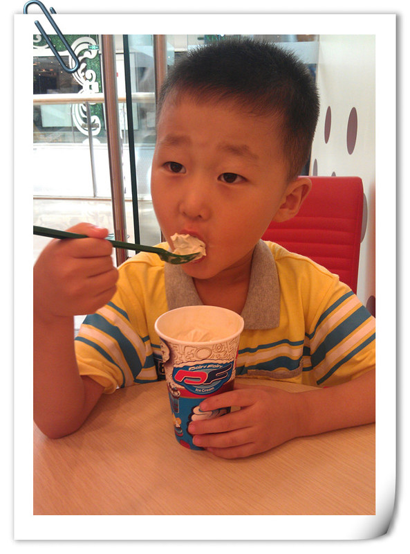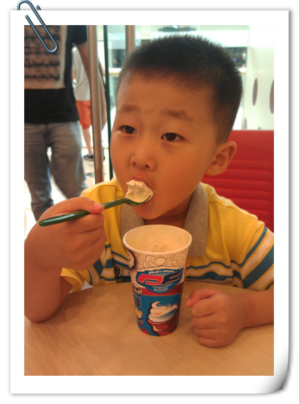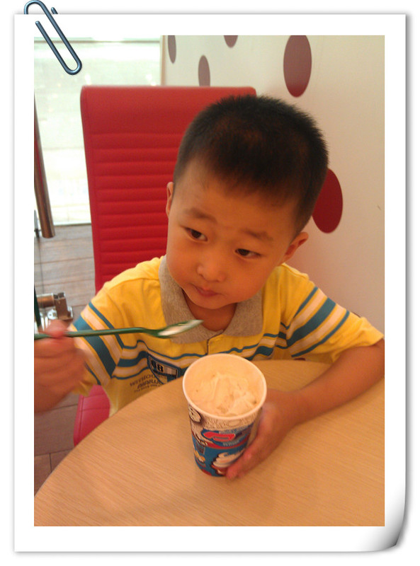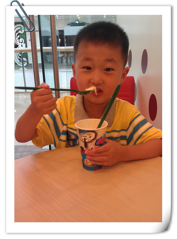 点点吃了一杯冰激凌,还问阿姨要吃芒果奶茶,真是很喜欢吃甜食的,看来妹妹真是吃货啊,到哪里都知道哪里又好吃的。