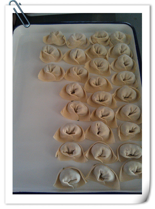 十五分钟我就做了满满的一盘子,等点点和点点爸爸回来我们就可以下馄饨吃了。晚上,我们就吃馄饨了,谁知点点不喜欢芹菜的味道,不怎么喜欢吃。青菜肉馅和白菜肉馅的点点可以吃八个呢,可是这样的芹菜肉馅点点只能吃4个,吃第五个的时候,点点说他要呕吐了,不喜欢吃就不吃了,以后做点点喜欢的青菜肉馅吧。