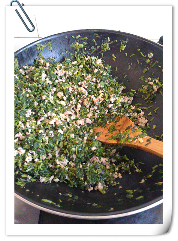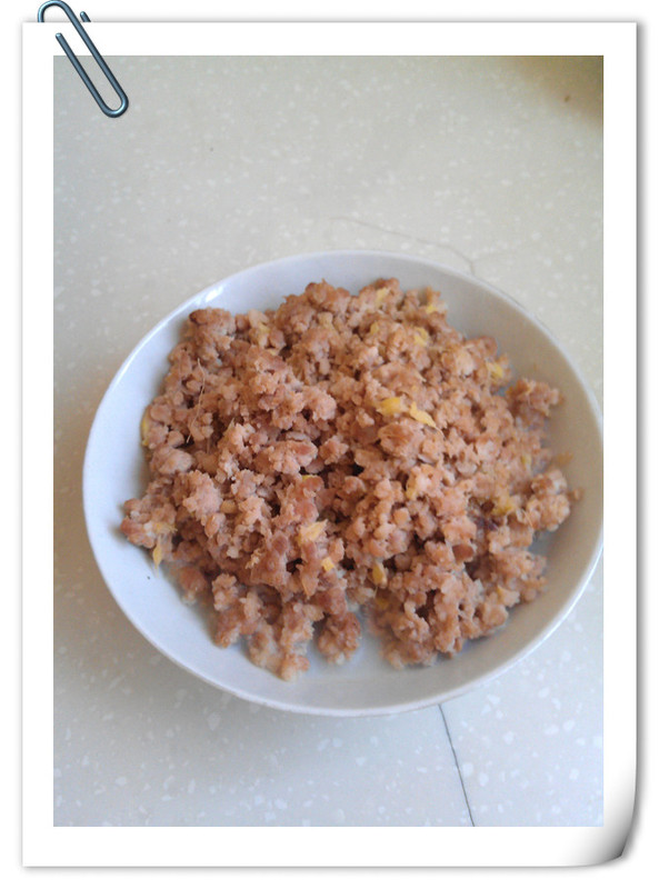 早上老妈很早就去菜场买回碎肉,回来以后还要在剁碎一点,加入生姜再剁碎,然后把碎肉在油锅里面炒一下,放入盐,酒,这样碎肉就已经熟了。