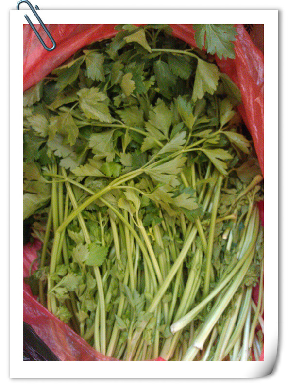 老妈从乡下带来了很多的芹菜,都是自己家在田里种的芹菜,都不撒农药的,所以非常的新鲜安全的,不像菜场上买的蔬菜都不放心,这些完全都是放心的安全的蔬菜啊。