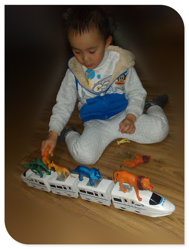 这是小家伙的动车,也是宝贝的大爱之一。看谦把各种恐龙和狮子等都聚在一起了,让他们搭乘动车去玩喽!一个动物占一节车厢,小家伙用手推着动车在地板上来回的绕圈,带着小动物去公园吧......