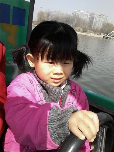 宝宝第一次坐这种船,本来没有想着要大炮的。不过,舅妈想让宝宝体验一下,于是两个人换了位置,宝宝体验一下打炮吧。宝宝知道哪个是控制大炮的,哪个是控制方向的。