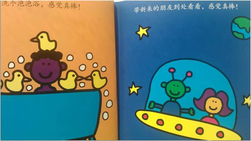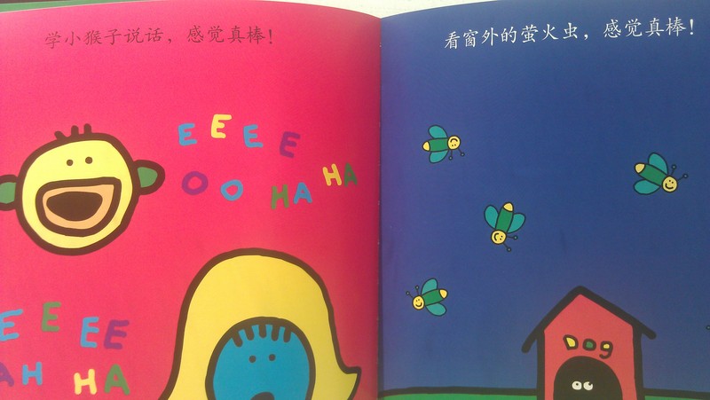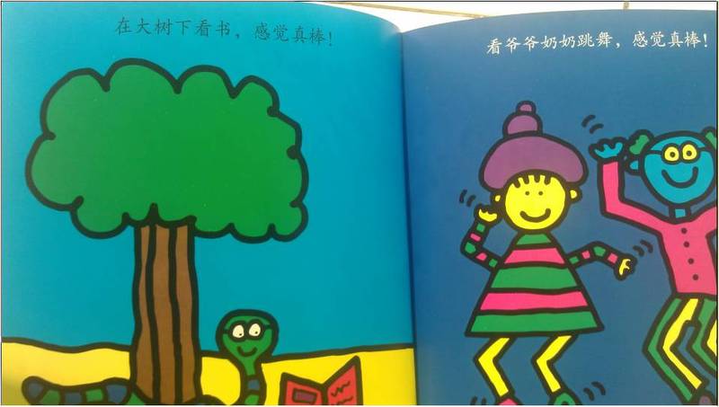@菠菜糖 给我们分享的那本是《没什么大不了》,书中用好玩的图画传达了各种各样的事情,有的让人害怕,有的让人惊慌,有的让人厌烦,但是换一种心情来看待,说一句“没什么大不了”,你会觉得这些事情啊,统统都可以接受。这样的理念让我在愉快的接受了,紧接着就发现受益匪浅,再和宝贝在一起经历那些以前匪夷所思的事情时,心态就相当放松,什么严重的后果都不会发生,何妨一笑待之! 所以我特别期待这次试读,承蒙@宝宝地带 的厚爱,感谢二十一世纪出版社的辛勤工作,我和畅畅得以拜读这本《感觉真棒》。