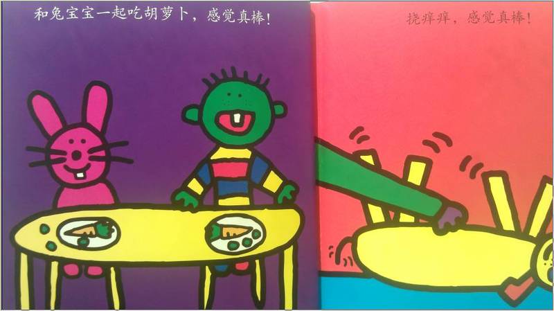 “和兔宝宝一起吃胡萝卜,感觉真棒!”这可能是专门写给那些不太爱吃蔬菜的孩子看的吧,即使是肉食的狂热爱好者,一看到绿色菜系就眉头紧蹙,但是假如是和兔宝宝一起共进胡萝卜大餐,一定别有一番趣味吧,所以感觉也是真棒!