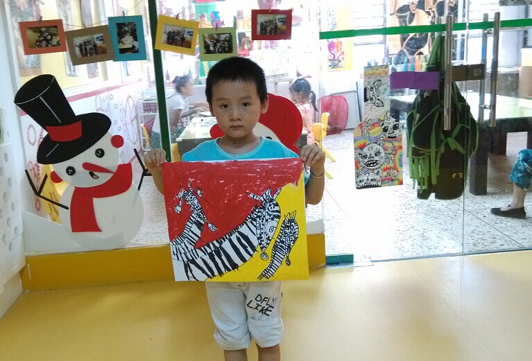 昨天的涂鸦课,是大宝这个学期的最后一节课了,去上课之前,我告诉他说上完这节课就要放暑假了,如果还想学的话就要下个学期了。大宝就问,画画班开始放暑假了,那幼儿园什么时候放假呢?我说可能还有两个星期吧,小家伙听了就自己嘀咕,说为什么这么晚呢,怎么不和画画班一样早点放呢。 ![]() 昨天下午的画画课,到了时间小宝还在睡觉,宝爸又因为有事没在家,我赶紧把大宝送到书画院和老师交待一下就回家了,结果走到楼下就听见了小宝的哭声,赶紧用百米赛跑的速度跑回了家,小家伙站在房门口已经哭得上气不接下气了,看到我回来哭得更大声了。幸好书画院离得近,我也及时赶回来了,要不然还知道要哭多久。可能是中途被尿尿给急醒了,平时每天中午也是要睡到中途起来尿尿一次再睡的。哄了好一会儿终于不哭了,然后又继续睡着了。 ![]() 等小宝醒来已经3点多了,小家伙一醒来看到哥哥没在家,就吵着要去找哥哥了。带着小宝去接哥哥,小家伙一冲进去就直接跑到哥哥画画的教室里了,我赶紧把他叫出来,看到旁边教室的姐姐在玩彩泥,就跑过去和姐姐一起玩了。我躲在门外看了一下大宝,这次画的是斑马,换了个新老师,这几节课都没有手工了,以画画为主了。 ![]() 大宝画的斑马一家,涂色还是没有耐心。老师也和我总结了一下关于宝画画的问题,说宝贝画画的手法及观察还不错,就是缺少点耐心,还需要家长多引导锻炼。 ![]() 昨天是宝贝这个学期的最后一节涂鸦课,拍了集体照留念。宝贝和三个小美女合影了,不错吧,呵呵