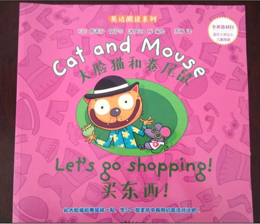 这本是大脸猫和卷尾鼠(Cat and Mouse, 英文名称明显不如中文名称那么有趣嘛)系列中的《买东西》(Let’s go shopping)。这是一本给2岁左右的小朋友阅读的绘本,所以情节单一,正是适合了这个年龄的宝宝喜欢“情节单一,不断重复”的特征,但是这本书情节虽然单一,但是每次重复的过程都是一个新的,有趣的体验,所以也不会让小孩子觉得无聊,小朋友如果可以预测到下面的故事,会大大增加孩子读书的信心和兴趣,而且最后还有一个大逆转,这样子的意料之外会让孩子觉得更具有趣。