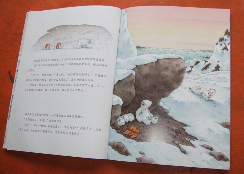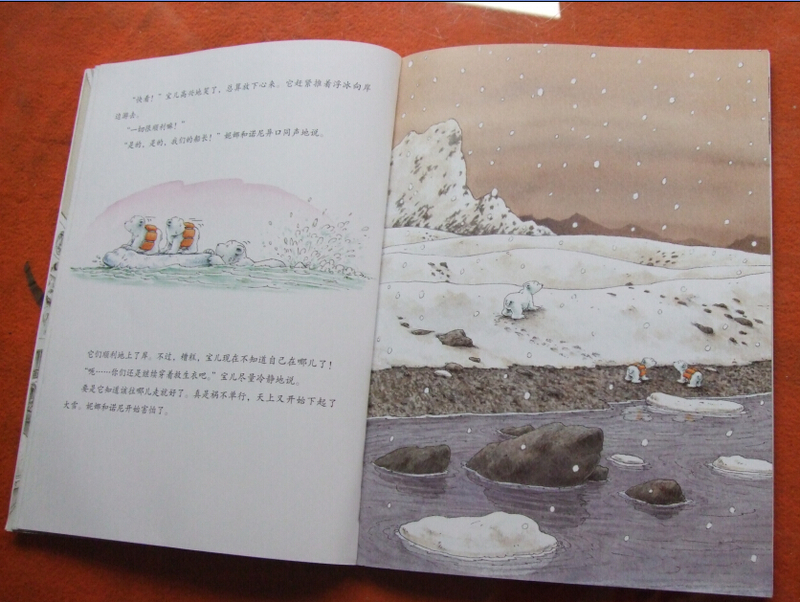 图书简介: 宝儿是一只热爱冒险的小北极熊。在冰天雪地的北极闯荡,他闯进科学家的实验室,乘着探险队的热气球飞上天空,被捕鱼船带到大城市,登上火车逃避大风雪,骑在鲸鱼背上游历海港……宝儿的冒险经历真是充满挑战! 荷兰图画书大师大师汉斯•比尔的经典之作“小北极熊”的故事,在欧洲家喻户晓,涵盖了孩子心灵成长的各个方面。小北极熊宝儿勇敢冒险,挑战世界;结交朋友,获得友情;每一次冒险,每邂逅一位朋友,都向着自信独立迈进。他教给孩子:挫折时不沮丧,困难时不放弃。 “小北极熊”的故事也告诉家长,孩子有着无限的潜力,要相信他们,放手让他们去做,这样孩子将来能够独立面对自己的人生。 ![]() ![]() 翻开书页,里面有编辑老师徐艳丽和耿春波的签名,意外的收获! 书里的内容简介是这样的: 宝儿是头勇于冒险和渴望友情的小北极熊,和真实世界里的小朋友心意相通。 北极的生活本来是简单乏味的,一头白色小北极熊在冰天雪地里闯荡,怎么变化出一个又一个的惊险曲折而色彩缤纷的故事呢?窍门在于冒险和友情。 ![]() 翻看完后总结: 《小北极熊和潜水艇》讲述了小北极熊宝儿渴望有伴一起玩,无意间跟随发现的新脚印来到一所潜水艇跟前,认识了一只腊肠狗弗雷迪,最后一起把被救而住进潜水艇里的两只北极熊宝宝带回家的故事。小北极熊宝儿自己本身就是只还未长大的北极熊宝宝,但他却在弗雷迪的帮助下,成功地把两只更小的不会游泳的熊宝宝诺尼和妮娜兄妹带离了潜水艇,并要帮他们回到自己的家。正如《小北极熊》简介里说的,小北极熊宝儿就是那潜力无穷的孩子影像,家长适当地引导和适时地放手,才能让孩子逐渐独立成长,最终更好地去面对自己的人生。 ![]() 开篇我和宝儿(我也这样称呼我的孩子)看到了白茫茫的雪地里,两只小一点的北极熊宝宝走在前面,后面是一只大一点的身上有桔红色挂饰的北极熊,与它并排走着的像是一只狐狸。我告诉宝儿,前面两只是北极熊宝宝,后面那只小北极熊的名字在宝儿,与宝儿排走着的确实就是狐狸,它叫北极狐,鼻子非学灵敏,能根据北极熊身上的味道,帮他们找到回家的路,北极狐现在就是在给迷路的北极熊带路。 ![]() 当我和宝儿看到,故事的主角小北极熊宝儿、独自一人在玩雪,宝儿说,他也想和北极熊宝儿一起玩雪,我知道宝儿和北极熊宝儿一样喜欢雪,他们都渴望有玩伴。这样的场景,其实就像我们现在的独生子女或高楼里的孩子,除了上学那会有同学小朋友可以一起玩,放学后,就没有玩伴,很是无聊,就算大人们不忙能陪着他玩,也照样代替不了缺少同龄孩子一起玩的那份孤独。于是他们会自己想着办法玩,小北极熊宝儿就和我们所有的孩子一样,他想着办法自己去玩去享受去冒险去寻找友情。小北极熊宝儿随着发现的新脚印,最终认识了新朋友腊肠狗弗雷迪。而我的宝儿,在家的时候,虽然附近很少有同龄孩子可以一起玩,但他总是会找对面的读小学的哥哥玩,尽管人家有自己的同学,不是很愿意和这么小的他玩,可他就有那股毅力,执著着有时让人烦哪,还好那些小哥哥中,有一个哥哥对宝儿很好,没事的时候,会来陪宝儿说说话和他玩。宝儿有时无聊地还会对着路过的人说话,真是可怜的娃儿啊,因为在家的时候,我常常在忙着家务活而顾不上他,只能是一边盯着他不让他跑离我视线范围太远。 ![]() ![]() 绘本里讲到,弗雷迪告诉宝儿,他的主人发现了两只在浮冰上的北极熊宝宝,把它们救下后安住在潜水艇里,宝儿决定要去看这两只北极熊宝宝,并把他们送会家。在送这两只北极熊宝宝回家的路上,尽管宝儿也觉得无助,甚至最后迷路了,但他一点也不害怕。在两只北极熊宝宝面前,他表现十分冷静沉着,细心地照顾着诺尼和妮娜兄妹。小北极熊宝儿的表现,就和我们现实中的孩子一样,当碰到有比他们更小更需要照顾的弟弟妹妹,他们会不由得心生怜悯自然表现大哥哥大姐姐的风范,这就是孩子的自然反应,他们自己调整自己到最适合的位置上,所以说,孩子他们有着无限的潜力,我们要相信他们能做好自己能力范围内的事,放手让他们去做去偿试,这才是对他们爱的最佳方法,适当地引导、适时地放手和始终相信孩子,是我们大人应该时刻谨记于心的,毕竟,孩子会长大,终究要自己去对策这个世界,去面对自己的人生,自己的路,要自己走。 ![]() 宝儿说,画面上是圆圆的月亮,我告诉他应该是太阳,因为小北极熊宝儿喜欢晒暖暖的日光浴。这图页里说到天气变暖的问题,弗雷迪告诉小北极熊宝儿:“每年北极的冰都会减少”,我查了下相关资料——由于全球气温的升高,北极的浮冰逐渐开始融化,北极熊昔日的家园已遭到一定程度的破坏,在未来的不久很可能灭绝,需要人类的保护。我不知道怎么样和宝儿解释这个事儿,所以就没有和他说起北极熊可能会灭绝的事,谁知道还要多久呢,等他长大了他自然就会知道这些知识的。 ![]() 小北极熊宝儿给北极熊宝宝诺尼和妮娜兄妹讲他冒险的故事,最后一起睡觉的温馨画面,我家的宝儿特别喜欢,我告诉他,宝儿要把北极熊宝宝送回家。 ![]() 做为比北极熊宝宝大的宝儿,悉心地照顾着诺尼和妮娜兄妹!天空飘着雪,很美! ![]() ![]() 他们迷路了,最后北极狐把他们带回了家。 ![]() (前后呼应的相似图片) 本作品未经作者许可不得转载,转载请征求作者意见。擅自转载使用,将保