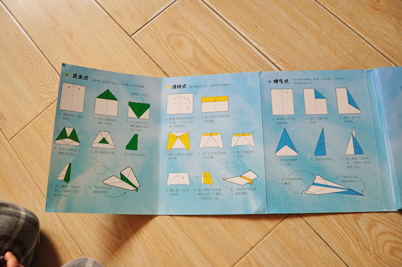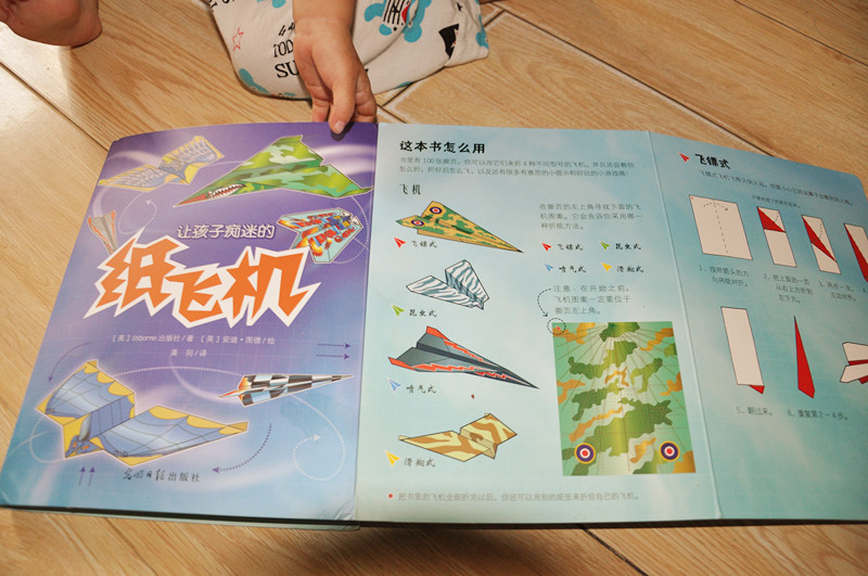 这是我在咱们网站得到的第二本书了,我想说这书质量真的太好了。申请书的时候我起初以为它只是简单的教孩子们怎么叠的方法,拿到书后才知道它不仅仅是这样,最重要的是每一页纸反正面都有不同的图案和折痕,也就是说这本书将呈现给我们100个漂亮的多姿多彩的各式各样的纸飞机。