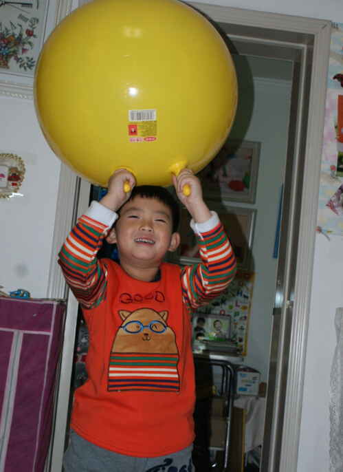 这样的事情发生过不止一次两次了,于是我决定给孩子买一个牛角球回家玩,再说了球原本也是可以锻炼孩子各方面机能的一种玩具,儿子又那么喜欢。