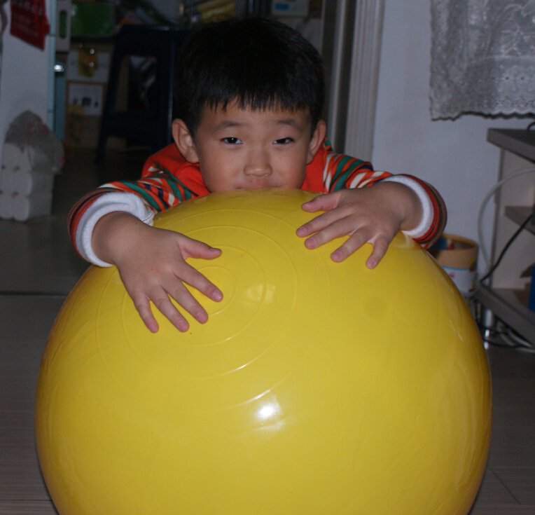 不会吧?孩子拿上都会玩的。子凯的幼儿园里没有这样的球吗?