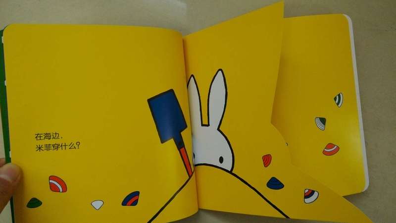 而在海边这一章,半页的形状却是顺着沙滩设计的。总之,孩子看了会非常感兴趣。拿到手以后,不禁感慨——不愧是别具一格的米菲!