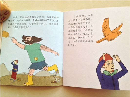 这次小裁缝依旧发挥了自己的聪明才智,投一颗小石子下去,让两个巨人互相残杀,不费吹灰之力就把两个巨人搞定了!