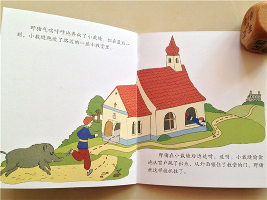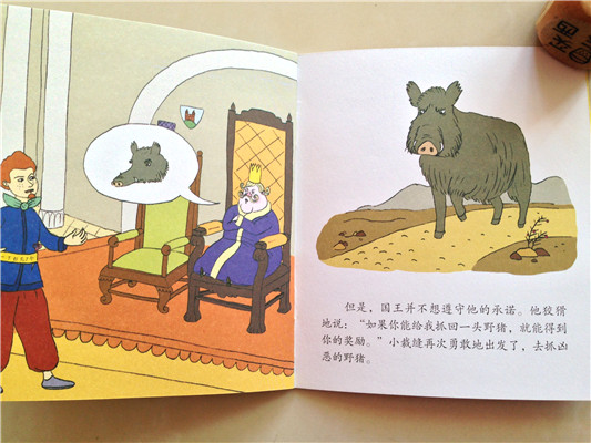 但是国王不想这么轻易放过他,于是又布置了一个任务就是让他去抓一只野猪回来,这回小裁缝又发挥了自己的聪明才智,他把野猪引到一个小教堂,把门锁住,轻松就把野猪抓住了!