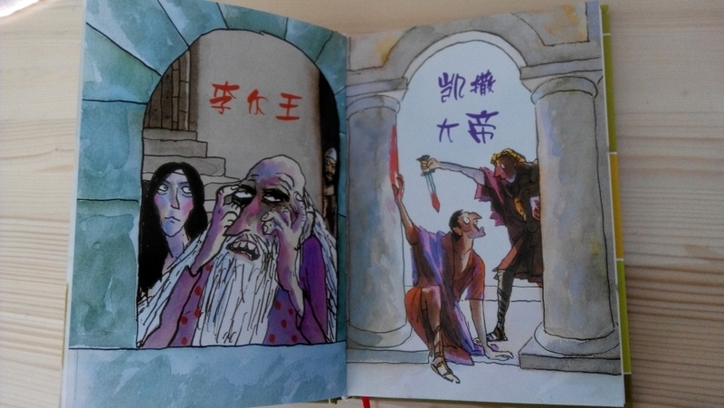 其实我们看待事物的时候不能只用眼睛去看,用耳朵去听,而是要用心去感受,用心去体会。 凯撒大帝,一个英勇的将军,他受到了公众的尊重,但是,他的朋友勃鲁托斯却害怕凯撒会变成一个暴君,成为独裁者。可是当他们将凯撒大帝杀死后,他们卷入了一场战争中,最终凯撒大帝的养子和朋友取得了最终的胜利,但是他们得到的又是什么呢?他们并不知道自己到底得到了什么,不知道战争结束意味着什么,不知道下一步应该怎么做。勃鲁托斯,原来是想保护罗马的自由和民主,却反而让罗马陷入了独裁的统治。勃鲁托斯本意虽然是好的,但是方法却过于激烈了,反而中了另人的圈套,最终也搭上了自己的性命和朋友之前的友谊。 后记中为我们介绍了莎士比亚和环球剧院,在这里让我们了解到这个剧院的一些信息。这个独特的剧院是当时许多人们消遣娱乐的地方。当时的演员全是男的,没有女演员。 书中的前半部分是中文版本,后半部分是英文版本。让我们在读故事的同时,可以对照中文来学习英文。
