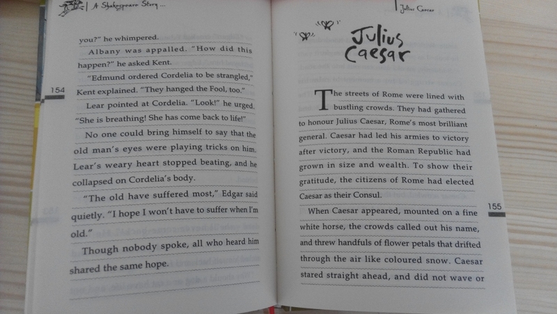 闪亮的莎士比亚6中介绍了两个故事,李尔王和凯撒大帝,这两个故事我都是第一次拜读。李尔王讲述的是亲情,凯撒大帝讲述的是友情。结果依然都是悲剧,但是通过故事让我们体会到了许多,让这些故事为我们敲响警钟,让我们懂得思考,引发深思。 李尔王,本是一位国王,当他年老后便将国土分给他的孩子们,但是当他问及到三个女儿对自己爱的时候,在当时他却没有领悟到爱的真谛,而是被表象,被花言巧语所蒙蔽了双眼。最终当他抛弃自己的小女儿后,他在其他两位女儿的打压,逼迫下,他才了解到其实爱不是多么冠冕堂皇的话语,其实爱只是很简单的一句话——“一个女儿应该怎样对待父亲,我就怎样对待您,不多也不少。”小女儿的话语是平淡的,但是里面却蕴含了浓浓的爱,但是当李尔王高高在上的时候他却感受不到,当他落魄的时候,他才发现,原来,这句话的分量才是最重的呀。结局虽然感觉有些伤感,但是父女之间却解除了芥蒂,让他们彼此之前感受到了爱。