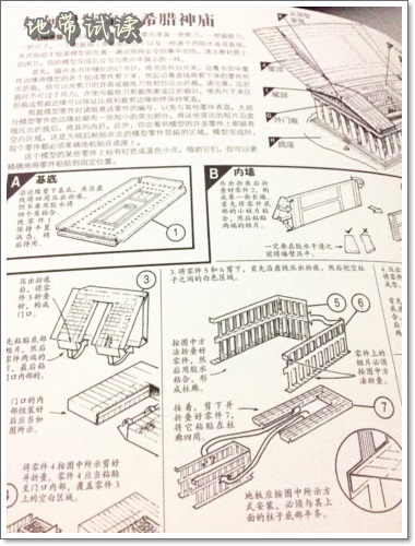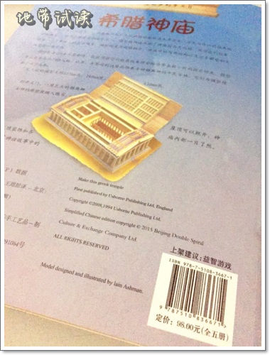 试读的是这本《希腊神庙》。 收到这本书有点惊叹哈,因为书好大,比A4还要大一圈,也有一定的厚度。 封面就是成品的3D图,一个非常漂亮的希腊神庙。 ![]() ![]() ↑ 很厚一本吧! 这次试读的手工书有别于以前,整本都是为了一个模型而设计的组装材料哦! 书中的封面页内页,和封底页内页,详细介绍了这个希腊神庙怎么搭建。 ![]() 按照建筑结构逐层拆解,把每一个结构怎么组装都画了出来,这个示意图非常的详细。 而且还注明了一些安装的细节,比如神庙的内墙,在装配的时候一定要在胶水干透之前将墙壁压平。 ![]() 封底还有一个神庙的图,展示了这个模型在完工之后,神庙的顶部还是可以掀开的哦。掀开之后就可以一目了然地观察到神庙的内部结构咯。 ![]() 书中内页: ![]() 每一页都是神庙的装配材料,从屋顶,门框,到底板等等。制作的过程需要把整本书拆开,从订书钉的位置拆开。然后还要用到裁纸刀,胶水,以及垫板,剪刀等等手工工具。 我觉得这套书对于孩子和大人都有很大的挑战,如果孩子可以独立完成整座神庙的组装,那一定是棒棒滴! 因为需要自己看懂装配图,然后还要能够找到书中各页的材料与装配图对应上,我觉得这种手工活儿对于孩子的思维尤其是空间想象力有着非常好的帮助。而且这套纯建筑类的结构搭接,是不是对以后的建筑设计还能有那么一点儿的启蒙呢? 哈哈。 我觉得对于手工书,孩子和大人一般都是非常喜欢的吧。 我们家儿子就非常喜欢手工书,每次做都要说“我来,我来!” 不过现在他的手工能力还比较弱,只能完成一些简单且大块的拼插组装,而且还需要我的帮助或是提示。 感觉这套书适合大一点的孩子,一是可以自己看懂装配图的提示,二是这个组装的过程感觉非常地细致。 是个细致活儿,如果孩子太小,恐怕不但组装图看不懂,装配估计也不能自己独立完成吧! 所以我打算把这本书收藏在书架里,等儿子大了再拿出来玩,嘿嘿。 本作品未经作者许可不得转载,转载请征求作者意见。擅自转载使用,将保留追究其法律责任的权利! 个性签名