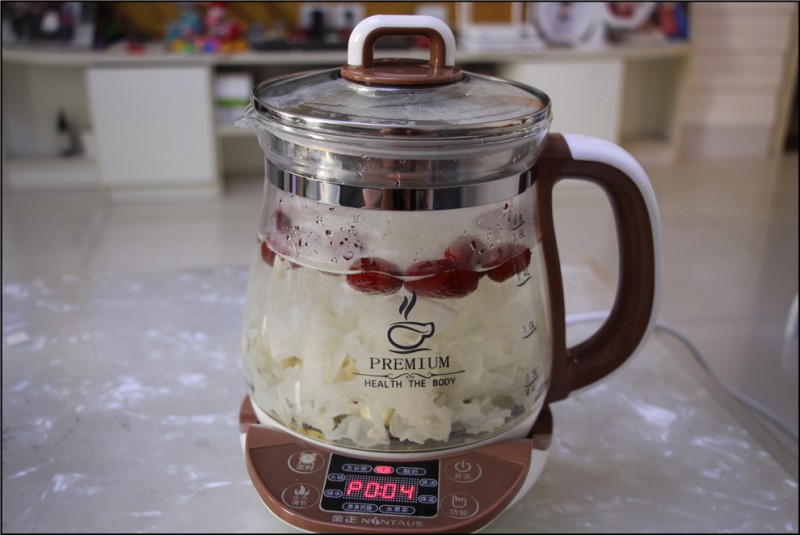 这样的壶我感觉不如 火上熬制的效果更 好,要把银耳的粘度熬出来最好了。我也喜欢喝这样的甜品,并且非常适合咱们北方人。