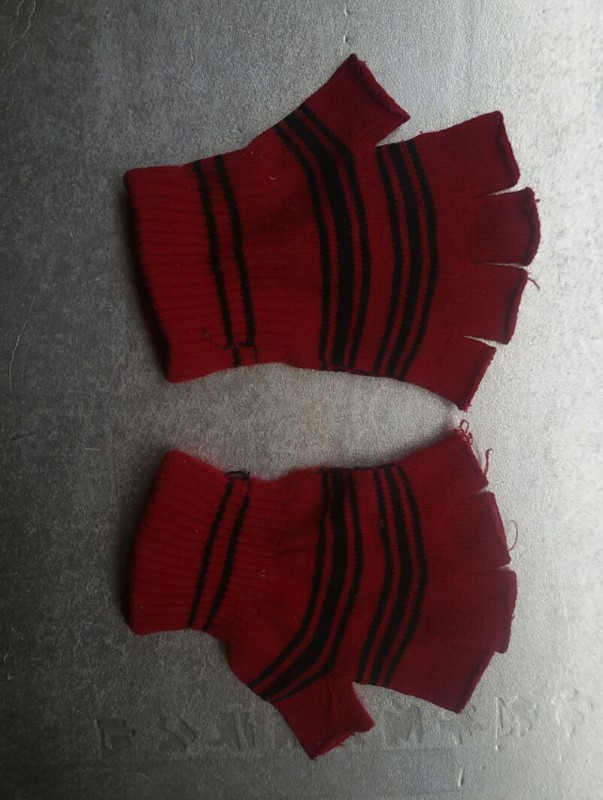 这双红色手套是我2003年的时候买的,才3元钱一双,当时是比较流行这种半指手套的。可买的时候我很粗心,竟然不知道买了一只一模一样的手套(两只都是左手戴的),幸好它们的正反颜色都是相同的,不认真细看的话是很难发现它们有什么不妥的。虽然是这样,但这双手套还是跟了我十多年了,而现在也可以继续使用,而且也很保暖,看来以前的手套的质量还是蛮好的。