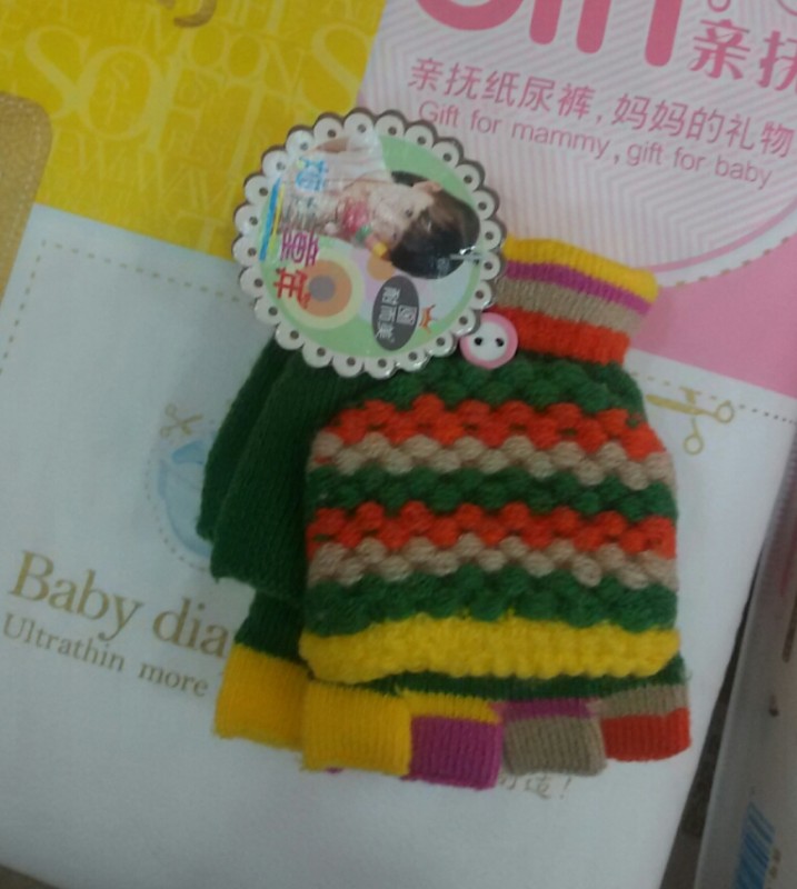( 这是我用了十几年的手套) 由于今年的冬天特别冷,所以被我找出来佩戴了。小不点看到妈妈的手套后,也嚷嚷着要一双自己的小手套。考虑到小家伙一双小手套都没有,最近这段时间带他出来玩的时候小手都是冷冰冰的,所以我还是觉得有必要为他买一双保暖的小手套。 这不,那天上午出门的时候,小不点又提醒妈妈为他买手套了。于是我就带他到附近的母婴店里选,选的时候我才发现现在的手套可真贵啊,小小的一双小手套都要卖十几元钱,不论是半指的,还是全指的小孩子手套一律都是十几元。不过,当小不点看到那些漂亮而可爱的小手套后就嚷嚷着要妈妈付钱,哎!他这种态度反而让我杀不了价了。 其实,我个人是比较喜欢半指的那种小手套的,方便手指活动,很冷的时候还能把手套后面的钮扣解下来,然后就成了全指的手套了,这样的手套既好看又保暖而且又方便。虽然我是这样想的,可我还是尊重孩子的意见,让他也试戴一双全指的手套,经过对比,小不点后来还是选择了半指的那种手套。接下来,我就让他选择自己喜欢的颜色了,然后他就选了一双颜色比较明亮的小手套。
