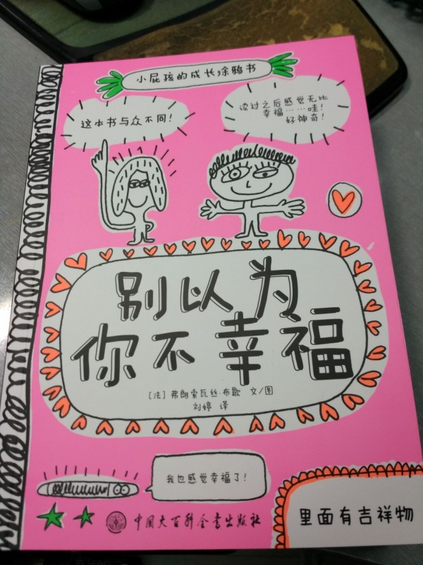 这次很幸运的得到了绘本精读分享的中国大百科的《小屁孩的成长涂鸦书》中的一本《别以为你不幸福》,这是法国著名的作家、漫画家弗朗索瓦丝.布歇的作品,一部找寻内心幸福的心灵魔法书,它不仅适合小屁孩们的,更适合小屁孩的家长。