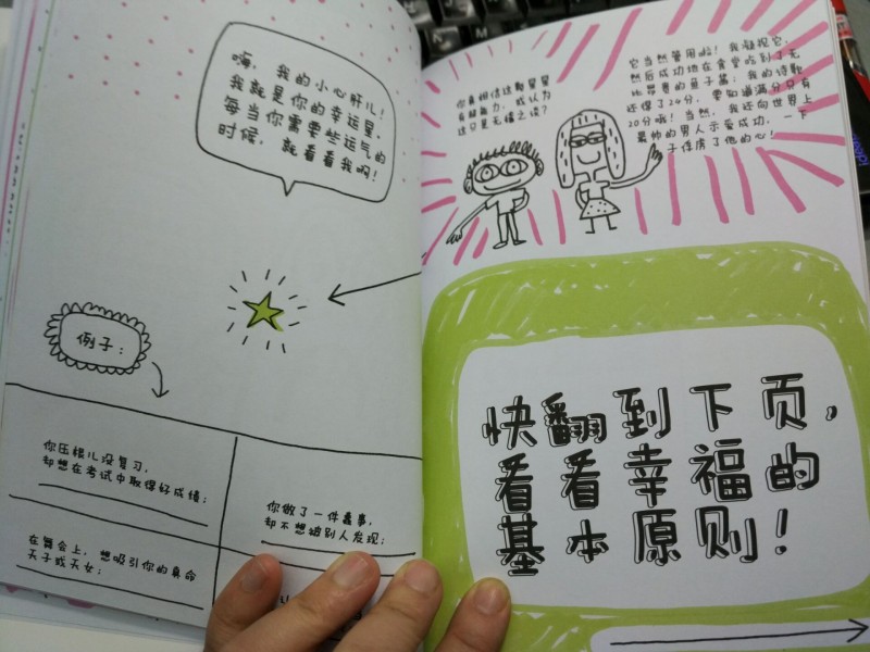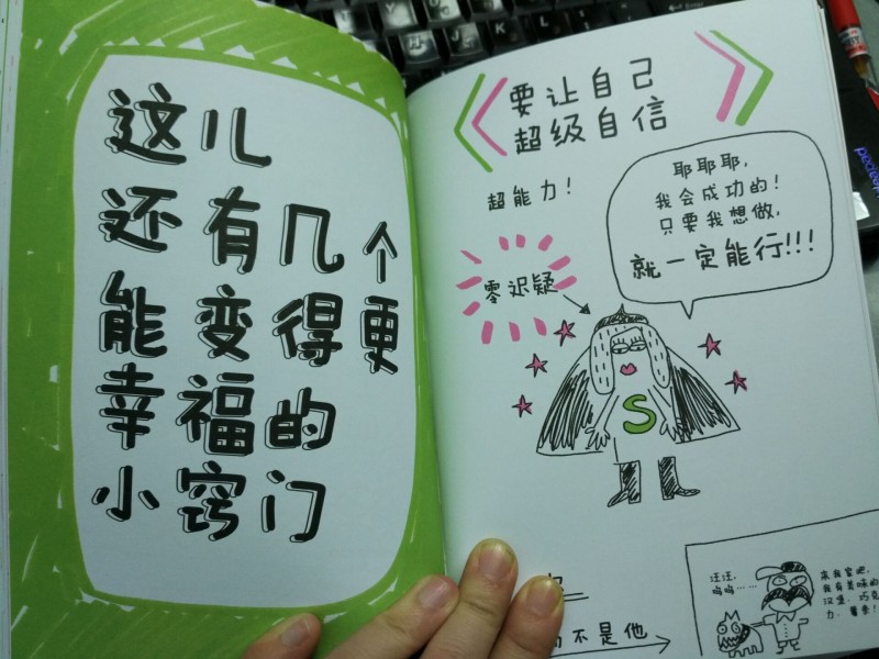 ![]() ![]() 这本书的画风非常的不同寻常,用诙谐夸张的方式,让人能一下子找到阅读的重点,更能吸引人的注意,找到属于自己的阅读节奏。每个人都有找寻幸福的想法和权利,每个人的幸福满足感不同,可能就造就了一些人觉得无聊、觉得不够幸福,但是事实上,他可能是已经很幸福了。虽然我家畅畅才2岁不能自己阅读这本“不讲理”的心灵魔法书,可是他倒是很喜欢这本书的绘画风格,一直问我都是什么字,喜欢那些标识出来的大字体,特别处理的彩色字体,这就是能吸引小孩子的魔法吧。我自己阅读后,会把这种寻找幸福,辨识幸福的技巧分享给畅畅,让他也能体会自己是幸福的,成长在幸福的空气里,健康成长。 ![]() ![]() 这本书告诉我们如何发现身边的幸福?幸福令你越来越轻,那种轻松做事的感觉;幸福会让你傻傻的微笑,面对一切困难;幸福会让你感觉你的心脏变得比你还大,一种心胸开阔的豁然;幸福使你光明而灿烂,令你所向披靡,这是一种让人充满力量的感觉,笑对生活的力量,前行无阻的动力。这本书列举了很多你是幸福的例子,只要看看就知道,咱们大家都是幸福的,看看我们都适用几条吧。 ![]() 书中列举了幸福的基本原则,多多付出你的爱,多看看生活好的一面,多交真心的朋友,自由的幸福,爱上和平,只有你做到了这些,你很容易得到幸福,也会感觉到满满的幸福。还有一些小窍门让你变得幸福,那就是自信的人才最美丽,爱自己,才能更好地爱别人哦。最有趣的是书中介绍了如何克服恐惧和胆怯,很简单四步走,想到一件不敢做的事,然后重复的告诉自己我能行,我能做到,把自己想象成那个能完成任务的人,勇敢的向前冲刺吧。 ![]() 很简单不是吗?我看了这书后是很有感觉,一种给我鼓舞的力量,让我能很快找到自己幸福的秘诀,其实都是很容易做的,只是我们平时没有好好的看清生活和自己的内心。这本书以一种孩子的思维和角度让我们懂得看似很难却很简单的道理,不要给幸福披上太多的外衣,那样你看到的就不是真实的幸福,而是披着各种外衣的隐藏者。 ![]() 最后,非常感谢宝宝地带和中国大百科给我的这次试读机会,让我的心灵收益匪浅。 本作品未经作者许可不得转载,转载请征求作者意见。擅自转载使用,将保留追究其法律责任的权利! |