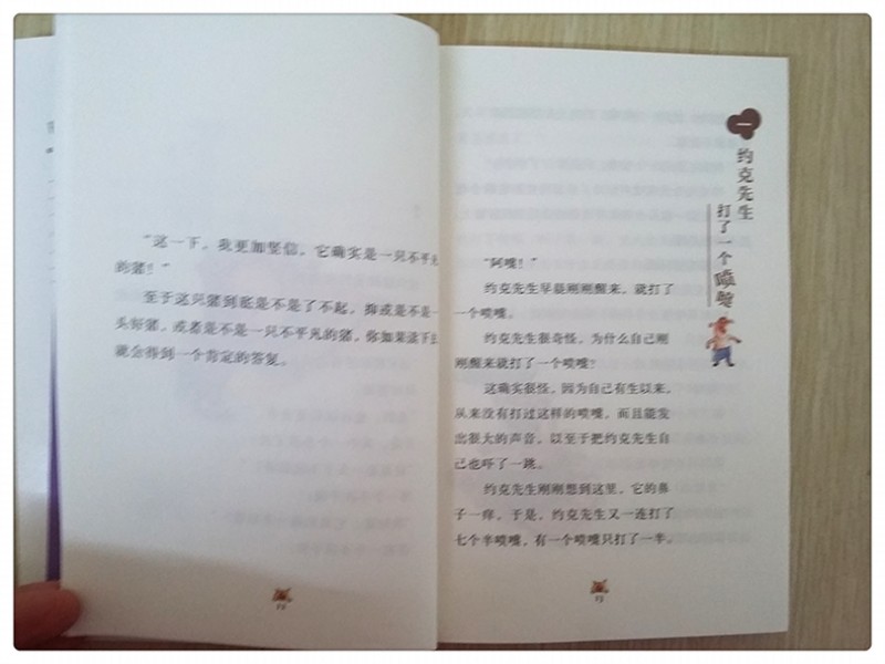 分享会结束后,中书名单里面有我,感觉真是太开心了,谢谢宝宝地带谢谢商家尚童。收到书之后,发现是一本32K的精装书,每一页的印刷质量都是那么好,小学生捧着小小的书本正合适,当我拿回去的时候,熠熠开心的不得了,边看边笑。熠熠属相是小猪,我经常说他是小猪,这次约克先生这只小猪将和熠熠小猪一起玩耍,看看谁更聪明。