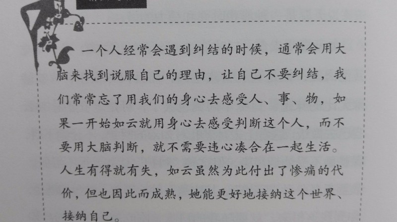 这本书让我回忆了自己的青春、经历,在如云身上我找到了共鸣点,或者应该这么说如云她就是现代社会万千女性的 一个缩影,她的经历也代表了众多现代女性的心路历程。书中的景、人,都是我们平常生活中所熟悉的,如歌手陈奕讯,景点鼓浪屿 等,这一切都那么接近我们的生活,这也是读者们共鸣点之一。 “ 一个奇女子”,由一开始我对这话都是疑惑的,如云的经历既然是一个现在女性的一个缩影,为什么又要说她是 一个奇女子呢?我把书看了又看终于领悟到作者的意思,如云虽然经历了很多磨难,曾经迷了自我,但最终她是没有像现在社会女性 那样堕落,消沉,反而最终悟出了人生的真理,在逆境中认识自己,接纳自己,放下自己和爱自己,把自己的经历变成人生的财富的 同时,去帮助了更多、更多的困扰中的人们,包括读者。 这本书,看书名大家都认为这是给女人看的书,包括推广都是以女性为主。是的,没错!女人们的确是要觉醒了。但是我个人 认为如果真的只是给那女人看,那就是大大的降低了这本书的价值。不说那个性格色彩的分析、心理学,就说如云的老公“老孔” ,那就是一个典型的问题家庭出来的孩子,“老孔”为什么这么渣?家庭成员的关系,尊悲、l等等影响了“老孔”性格,心理,或者如果 当初“老孔”父母关系好一点,或者也不至于让读者一边读一边咬牙切齿。 书中有一段文字:在如云的人生戏剧中,如果没有那个初恋男友,没有老吴,没有老孔的出现,没有那些不如意的事件发生, 如云又如何深入的了解自己是谁? 当我读到这里时,我深深的吸了一口气,真幸运我不用通过这么的方式去认识自己,觉醒自己,所以我呼吁:未婚的,已婚 的,女的也好男的也罢,都应该好好的去读一读这本书。 ![]() ![]() ![]() ![]() ![]() ![]() ![]() ![]() ![]() ![]()