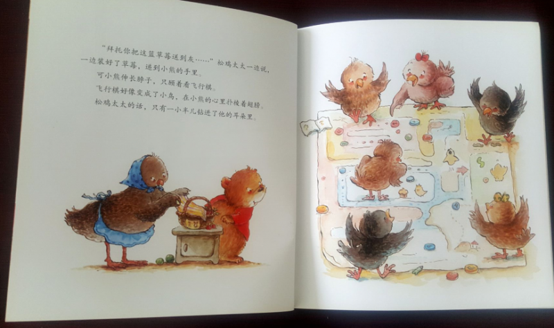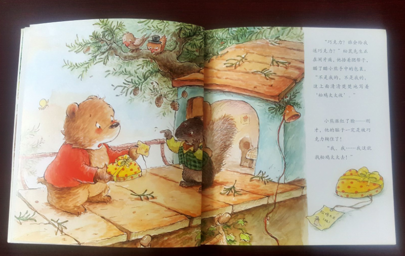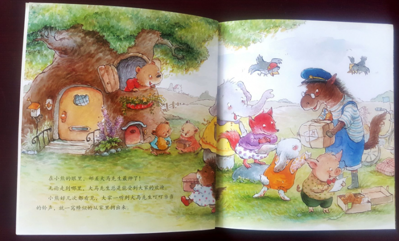 曾听过人有两只耳朵,而只有一张嘴的原因,就是要让人学会多倾听少说话。学会倾听是孩子养成良好习惯的前提,无论日后是学习中还是生活中,一切都源于倾听。可对于孩子来说,倾听要作为一种能力来提高,一种习惯来培养,尤其是上学的孩子来讲,上课很好的倾听才是好好学习的基础。 对于我家孩子来说,我一直都有刻意培养孩子的倾听能力,还专门咨询了老师进行针对性的练习,可是牛就是那种听三不听四的孩子,经常是作业只记了一半,老师交代的事情只知有其事,可是具体询问什么事情,又说不上来,这很明显就是一种倾听能力缺失的表现。所以说,对于孩子来说,培养孩子的倾听习惯非常重要。 《小熊想要当邮差》就是一本培养孩子倾听能力的绘本。一天,邮差大马先生由于生病了,小熊就帮忙送包裹。可是小熊没等大马先生说完话就跑掉了,直接跑到了松鼠的家,可是这个包裹根本不是松鼠家的,其实是要送给松鸡太太的……这整个故事里,小熊非常友好的帮助大马先生送信,可是却都因为没有认真的倾听,三心二意,注意力不集中,导致把送给松鸡太太的巧克力错送给了松鼠家,把送给灰兔奶奶的草莓错送给了灰鼠爷爷家,把送给河狸小姐的围巾错送给了河马太太,小熊对自己的不认真倾听闹出了这么多的笑话感到十分的惭愧,连连跟大家承认错误,粗心不懂得倾听的小熊终于意识到自己的问题,在接下来的工作中,努力改掉自己的错误,把每个人对于大马先生的祝福都记录的很认真,很详细,看来小熊已经意识到了倾听的重要性,也学会了如何有效的倾听他人讲话。