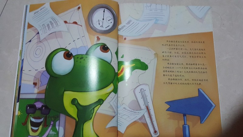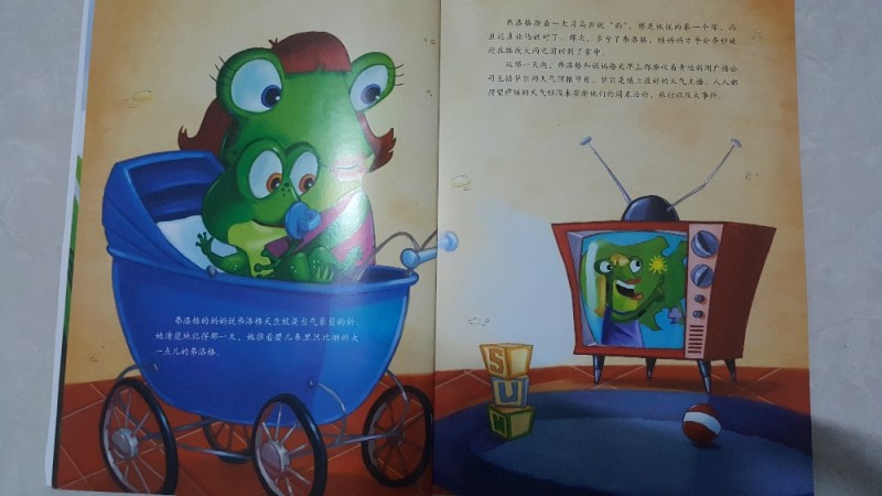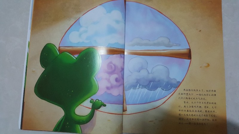 ![]() 翻开绘本的第一页就可以清晰的看到青蛙弗洛格的小房子,超级可爱的绿色,但是更为引人注意的要数这两扇窗户了,左边这扇窗画的是各种各样的云的形状,右面这扇窗户则是展示了各种天气状况,所以看到这里我们就很容易想起故事的主角喽,这可是讲述的观雨记哦!青蛙弗洛格是一只开朗的小青蛙,各种各样的天气都能够让他开心,讲到这里小子打岔了,说:妈妈,我也喜欢雨天也不喜欢雨天。啊?我没有听错吧?怎么能够也喜欢也不喜欢呢?小说:因为下雨的时候不能出去玩,只能在屋里待着好无聊的,但是下完了雨,我可以穿着我的防水鞋去踩水啊,你不知道踩水可好玩儿了!哦哦,原来如此,明白喽! ![]() 弗洛格的妈妈清晰的记得它说的第一个字:雨,那天也幸亏弗洛格及时说出了雨,妈妈才能争分夺秒地赶在瓢泼大雨之前回到了家中,也就是从那天起,弗洛格和妈妈每天早上都要收看青蛙新闻广播公司主播萨丽的天气预报节目。小小的弗洛格竟能够通过云看出雨,所以妈妈不得不重视起来哦! ![]() 看看天空中这四朵形状不一的云吧?有大堆蓬松的白云,看上去像棉花糖。有时天空中的云看起来扁扁的,朦朦胧胧,像一片橡灰色的大毯子遮住了天空,有时,天空中 还有一些纤细、卷曲的云,像一匹马的尾巴,这样的云朵我们从来没有仔细观察过,自然也看不出什么云会带来什么样 的天气状况喽!小子说:妈妈,那我也记得每天去观看一些云朵!好来,我们也做一个小小的气象观察员嘛? ![]() 因为弗洛格对天气非常感兴趣,蛙爸爸在后院给他建了一个气象站,这样有助于弗洛格能够更好的观察气象,预测天气喽!蛙爸蛙妈从来没有问过他想要什么生日礼物或节日礼物,只要给他有关气象的图书、图表和工具,就总能让他高兴!是啊,小孩子嘛,投其所好,一定会很开心的,因为他们的愿望都会很容易满足的!我的宝贝最喜欢的就是绘本故事和迷宫书,只要是给他这两样礼物,他也会开心的不得了啊! ![]() 期初蛙妈妈只是觉得弗洛格看天气的样子很可爱,但弗洛格很多次都预测的很精准,蛙妈妈便忍不住向她的朋友们夸耀弗洛格惊人的天气预测能力,没过过久,整个小镇都知道弗洛格能通过自己的方法预测天气!有一天在学校,霍利担心自己生日那天会有雨,老师就让弗洛格在黑板上画出天气预测的情况,他解释了当时的状况并说明未来几天的天气是晴朗而且温暖的。全班欢呼雀跃。当霍莉邀请弗洛格参加她的生日聚会时,弗洛格既兴奋又开心。 ![]() 然而有一件事改变了弗洛格的生活,那就是当主播萨丽生了三只小蝌蚪时,她必须要请产假了,电视台新请来的天气预报员珀利,很快她就成了一只大红大紫的青蛙她太忙了,她从早到晚不停的参加各种活动。 ![]() 也正是因为她要忙太多的事情,所以有时直接不报天气状况了,她竟然说:大自然母亲今天有点狡猾,今天可能是晴天也可能会下雨,谁知道呢,甚至还可能下雪,做好准备吧!青蛙们在镇里跳来跳去准备他们的雨伞、太阳镜还有手套,因为他们不得不为各种类型的天气做好准备。 ![]() 镇长因为蛙跳野餐活动就要开始了来到了弗洛格的家中,要它帮忙预测天气,弗洛格很开心,他一定会尽其所能的。镇长看了他的气象站后印象非常深刻,毫无疑问,他已经找到了天气预报工作最合适的人选了!小小的弗洛格,加油哦,整个小镇都指望你播报正确的天气预报了! ![]() 弗洛格没有让大家失望,每天至少三次观测气象,直到野餐的前一天,弗洛格观测到会有大风、降雨,但会影响到野餐他很担忧,而珀利在天气预报中对大风雨的情况只字未提。 ![]() 萨丽带着三个小宝宝也过来帮忙了,确认真的会有大风雨的天气会,站长抓紧时间打电话给电台,但是还是吧晚了一步,珀利已经预报他完了。 ![]() 做好准备,对了,我们必须为大风雨做好充足的准备,当暴风雨来临时,弗洛格指挥青蛙到了青蛙集散中心,不久,大家可以好好的享受室内野餐了,活动也进行的相当顺利。 ![]() 经过这次的野餐活动,镇上所有的青蛙都知道弗洛格的天气预报让野餐活动取得了成功,弗洛格这辈子从来没有收到过这样多的赞扬。珀利很尴尬,但是她很感激弗洛格,并邀请他当自己的助手,弗洛格禁不住兴奋的蹦上蹦下,这时天空出现了漂亮的彩虹,真的是太美了,加之弗洛格的大成功,真的是太棒了,对于这个小气象员来说,未来一定会更加美好! ![]() 最后我们再来详细的认识一下不同形状的云朵所代表的含义啊!让宝贝们和弗洛格一起观测天气状况。 ![]() 本作品未经作者许可不得转载,转载请征求作者意见。擅自转载使用,将保留追究其法律责任的权利! |