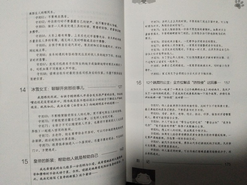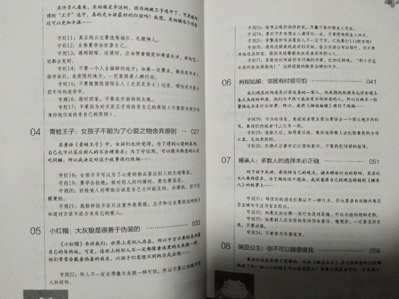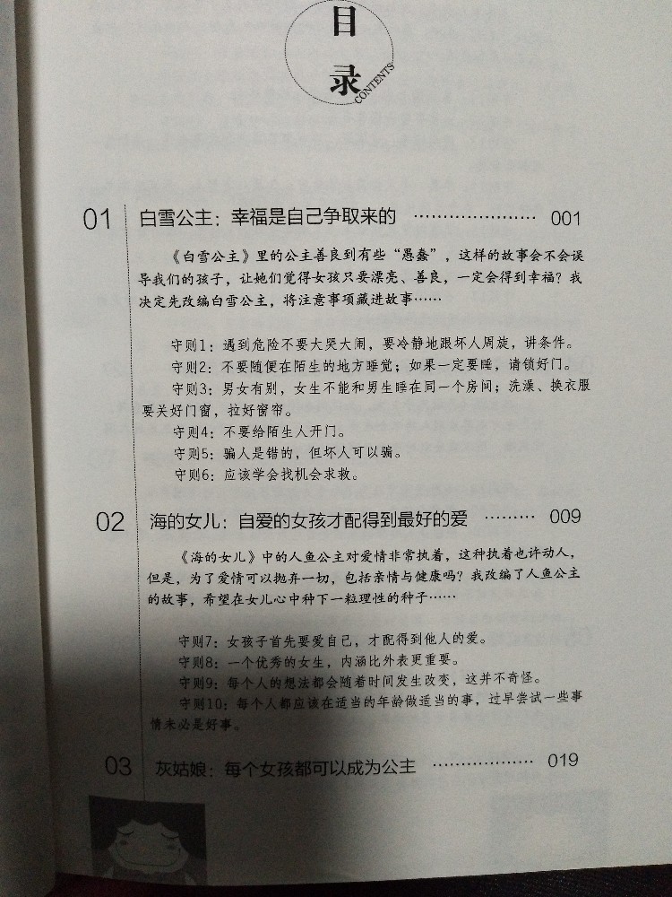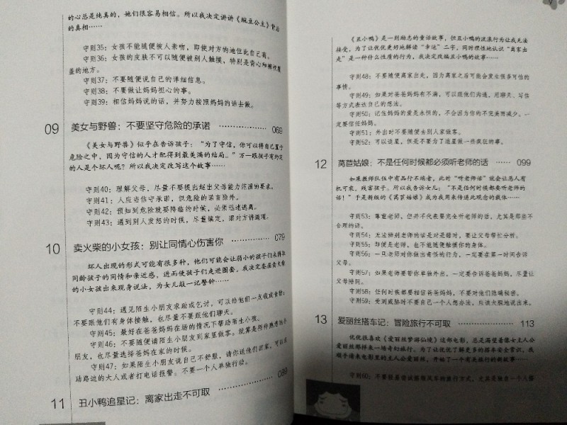 虽然社会上有一部分是坏人,但是不能因为这些坏人而让我们的孩子觉得这个世界是非常可怕的,那要怎样让孩子学会保护自己呢?光靠生硬的说教,孩子只会更加反感,所以我觉得《芭比学校公主守则》这本书就是一本很棒的教孩子保护自己的书。 ![]() 沈老师通过对16个故事的改编,让孩子学会了如何保护自己。其中15个故事都是我们所熟知的故事:《白雪公主》《海的女儿》《灰姑娘》《青蛙王子》《小红帽》《拇指姑娘》《睡美人》《豌豆公主》《美女与野兽》《卖火柴的小女孩》《丑小鸭》《莴苣姑娘》《爱丽丝梦游仙境》《冰雪女王》和《皇帝的新装》,还有一个动画片《12个跳舞的公主》。可以改编这么多故事来教会孩子自我保护,我还真是对沈老师佩服得五体投地啊!正是因为对孩子的那份爱,才会让沈老师想出这么好的方法来让孩子在不知不觉中掌握这些好的方法的吧! ![]() 书的最前面讲述了沈老师改编这个故事的想法,之后就是改编后故事的内容,最后是听完故事后沈老师的孩子的反应,以及故事中总结出来的公主守则。 在这些故事中我印象最深刻的就是《海的女儿》和《小红帽》。 ![]() 《海的女儿》故事中的小美人鱼为了自己所爱的人不惜伤害自己和最爱她的家人,最后化成了海上的泡沫。在沈老师改编的故事中,通过王子的话告诉了我们:“作为王后,仅仅有美丽的外表是不够的,渊博的知识、善良的心灵、宽广的胸怀、聪明的头脑、得体的举止,这些远比漂亮的外表重要得多。”“连自己都不爱,又怎么配得到最好的爱呢?”这些话都非常有道理!在平时的新闻中,我们总是会听到某些人因为和男朋友分手或者婚姻失败就自杀,这样的做法太过于极端,选择这样做的人都是一些不懂得自爱的人,一个不自爱的人又怎么能得到别人对自己的爱呢? ![]() 《小红帽》故事中小红帽因为大灰狼假扮成自己的外婆差点被大灰狼吃掉,沈老师通过改编小红帽的故事,让小红帽了解到了大灰狼会假扮成父母的朋友、警察、保安或弱者让小红帽上当,可是小红帽因为听了妈妈的教导,用自己的智慧战胜了大灰狼,还把自己的故事写成了《小红帽自我保护秘籍》,让所有小朋友都学会了自我保护,让大灰狼再也没有了做坏事的机会。这个故事中的所有骗术平时我们也经常听到,但是总是会记不住,但是看了这个故事以后,宝贝却记住了所有对付像大灰狼一样坏人的方法。 “授人以鱼不如授人以渔。”让孩子学会自我保护,才能够健康平安地长大! ![]() ![]() 本作品未经作者许可不得转载,转载请征求作者意见。擅自转载使用,将保留追究其法律责任的权利! |