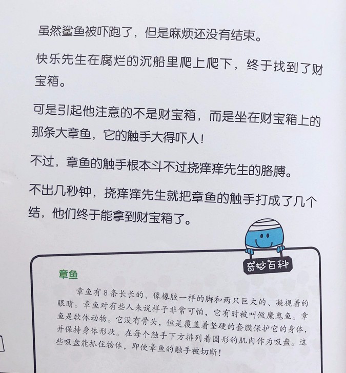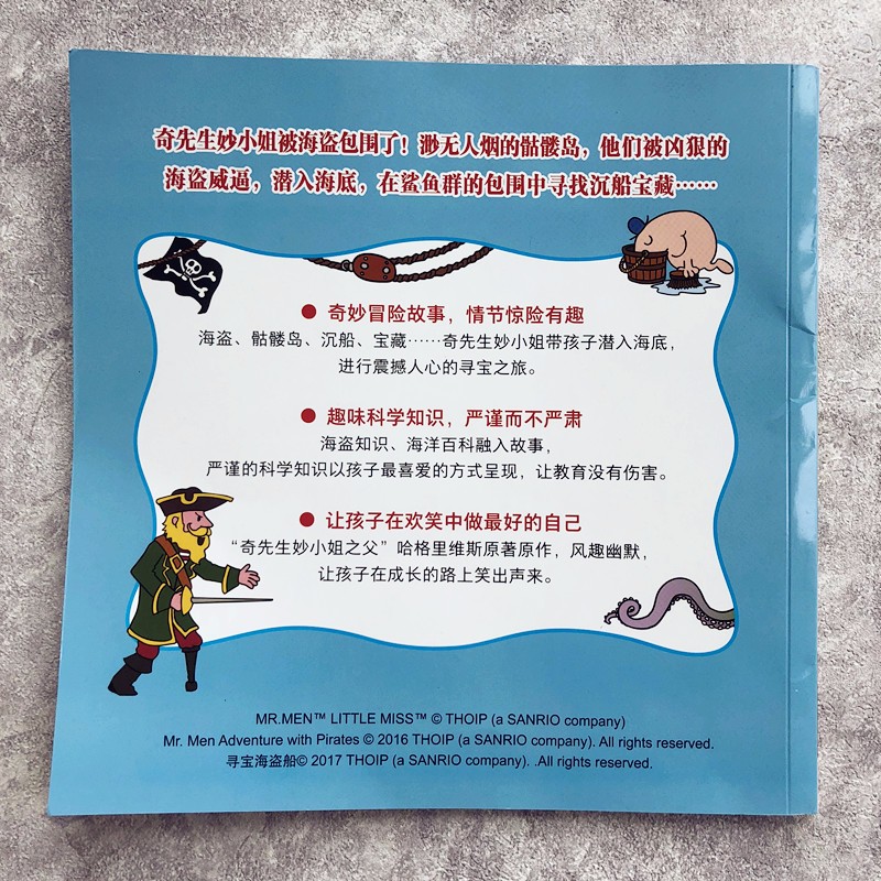 布丁是典型的水瓶座男孩儿,富有冒险精神,喜爱一切新奇、新鲜的事物, 喜欢看《荒野求生》类节目,“贝爷”是他的偶像。在《荒野求生》的一期节目里看到贝爷用指针手表当做指南针来用,布丁觉得好神奇,节目内容精彩刺激又能学到很多小常识。 但在现实生活中,小孩子很少有冒险的机会。除在电视上感受一下这种超酷的经历,冒险类绘本也是不错的选择。今天就给小朋友们推荐这样一套冒险+科普的图书《奇先生妙小姐冒险科普绘本》,全套书籍共8册,将太空、海洋、生物、交通、人文等科普知识融入故事中,塑造了一系列关于奇先生妙小姐的冒险故事,且每个主题都是孩子比较感兴趣的内容。 ![]() ![]() 布丁这本是《寻宝海盗船》,快乐先生和朋友们被拖上海盗船后,才知道黄胡子有多么凶狠。“你们可以选择,”黄胡子恶狠狠地说,“要么跟我干,要么走跳板!”大家都认为当海盗可能是最好的选择,除了不可能先生。被抓到海盗船上一个星期后,他们才知道黄胡子想让他们干什么。原来,这些海盗在寻找黑胡子的宝藏。他们有一张地图,上面标着黑胡子那艘装满财宝的大船沉没的地点。这些海盗不会游泳。因此,黄胡子要快乐先生和他的朋友们潜到海底的沉船里,把那些宝藏找回来。奇先生妙小姐能找到宝藏吗?我在这里就不剧透了,还是小朋友们自己去看吧。 ![]() ![]() “奇先生妙小姐”系列是可以让全世界的孩子发出笑声的书。它非常直接,把人们的性格和身体特征拟人成一个个有趣的形象,独特鲜明,可亲可爱,符合人类共同的审美。这些形象典型的性格和行为反应了人性的基本特征,让人们产生强烈的共鸣。同时,奇先生妙小姐”系列的趣味性强,没有说教。作者通过英式幽默,把他想告诉孩子的道理巧妙地融入故事中。在阅读过程中,孩子会形成自己的判断,在潜移默化中学会待人处事的道理。 ![]() 情节惊险有趣,海洋科学知识融入故事,娱乐学习两不误。 ![]() 布丁最喜欢错误先生,他觉得错误先生特别搞笑!他最爱看错误先生操作失误把海盗船打了一个大洞的情节。 ![]() ![]() 你家是不是也有一个内心充满好奇,骨子里有着冒险精神的小孩儿呢,我敢肯定他一定会爱上这套《奇先生妙小姐冒险科普绘本》的。 本作品未经作者许可不得转载,转载请征求作者意见。擅自转载使用,将保留追究其法律责任的权利! 个性签名