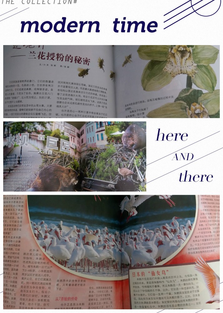 ![]() 封面上的两只长嘴鸟格外显眼,尤其是上面那只展翅欲飞的,每一根羽毛都清晰可辩,在光影的背景下分外好看。而它们的上面,是三幅与本期内容相关的图片。分别是:石头会走路?水坝“巨匠”——大河狸,以及今天的标题十分闪亮,让读者充满遐想的空间,又想去一探究竟。果然是进入了一个探索频道啊。那就让我们一起去探索环球吧。 ![]() 别着急,翻开书我们发现,这不仅仅是一本平面书,而且还具有4D效应哦。借助于4D书城APP扫一扫,这本书还会呈现出立体图形哦,而且还有AR效果哦,使阅读变得更加有趣了。随后的Give me five也很有意思,从科学探索的角度出发来了解关于“打喷嚏”的5分冷知识,看似平常生活中的一个小举动,也蕴藏着很多值得探索的秘密哦,这样的开篇方式,一下子就抓住了小读者的好奇心,有了探索的欲望。很棒的开篇设计。 ![]() 接下来的目录部分设计得也很美,你看,虽然是科普类得杂志,但没有给人呆板和枯燥的感觉,而是新奇和赏心悦目。有AR效果的内容也在目录部分做了红色的鲜艳标注,方便翻阅和查看。 ![]() 终于要进入内容部分了,一起来看一看吧。对于会走路的石头本人真的很好奇哦。原来这是一个发生在死亡谷的未解之谜。人们在死亡谷发现了一些石头,拖着长长的尾巴,难道是他们的运行轨迹?为了寻求答案,人们运用了各种手段来观察这些石头,后来发现的确是石头发生了位置的移动。这也太神奇了。为了寻找石头“自己”移动的原因,又一轮新的探索开始了。100年来逐渐形成了很多观点,有学者认为是风吹动的,有学者认为是冰推动的,还有学者认为是微生物润滑的,各有各的理论基础。再这一探索的过程中,给小读者揭示了如何去发现奥秘,思考奥秘,最终诠释奥秘的过程。探索是无止境的,而拥有一颗具有探索精神的头脑才是最重要的。当然,整本杂志中这样的科学探索还有很多,就不剧透了,等着大家去探索和发现哦。 ![]() 除了内容之外,插图也是这本杂志的亮点哦。大幅的图片,都是实拍的效果,而且很有细节的图,很形象和逼真,能帮助小读者很好的理解文中的一些科普知识。全彩色的设计比一般的杂志更具有可读性哦。 本作品未经作者许可不得转载,转载请征求作者意见。擅自转载使用,将保留追究其法律责任的权利! |