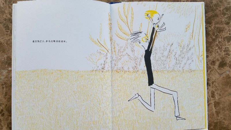最近地带有关于父子的绘本我都会积极的申请。因为我想通过绘本让孩子爸爸更了解孩子更多的参与到孩子的成长中。也希望通过故事孩子能了解爸爸的苦心和不易。 我们家这两个孩子都是我带的比较多。我每天除了上班,从孩子的穿衣吃饭到洗漱都是我一个人在负责。爸爸基本上就是负责挣钱养家了。原来回到家就是吃饭看手机。后来我经常说他,手机看的倒是少了。现在每个周末都会带着孩子去玩一天。不过这男人带娃太烧钱了。每次都是游乐场加吃饭,玩一次几百元就没有了。每天晚上都是我带着两个孩子在外面玩,有时候看到一家三口四口的在一起我也是特别的羡慕。但是看着老公每次回来似乎很疲惫也就不想叫他出门了。算了还是说说今天的这本书吧。 《我们父子俩》是孩子写给爸爸的别样情书。原来有一句话是“我陪你长大,你陪我变老”。我觉得变成“我陪你长大,你陪我成长”似乎更贴切。我们这一生都有很重要的三个角色。男人是:儿子、丈夫和父亲。女人是:女儿、妻子和母亲。每一次身份的转变我们都会变得更成熟稳重。读了这本书我们就会更深刻的感觉到父亲和母亲这个角色很奇妙。 这本书文字不多,每一页只有特别简短的一句话。夸张怪诞的铅笔画非常有趣,画上使用了大面积的高明度黄色,充分展示了孩子们天生的创造性、探索性。同时,传达出一个简单的信息,即成年人可放慢生活节奏,并从中感受到前所未有的快乐。我感觉跟孩子们在一起就是累着并快乐着。 这本书是以孩子的口吻描写了父子之间的成长故事。看到书中的父亲,让我想起了一个邻居。他就是这样的一位父亲。他儿子小的时候,赶着下雨天父子两个就在雨中追逐嬉戏。下雪天陪着孩子一起玩打雪仗堆雪人。孩子想学的东西都会让孩子去尝试。当时他儿子在我们院里算是最调皮的孩子了,但是也是公认的脑子聪明的孩子。现在非常的有出息。考了飞行员都开上大飞机了。这就是一位有爱心有创造性的父亲。他没有给孩子定太多的规矩。就是希望孩子能明事理开心快乐的成长就好。而我的老公就是总是给孩子定太多的条条框框,让孩子总是感觉很压抑。希望老公看了这本书也能有一个转变。