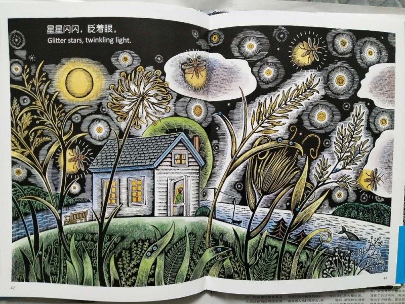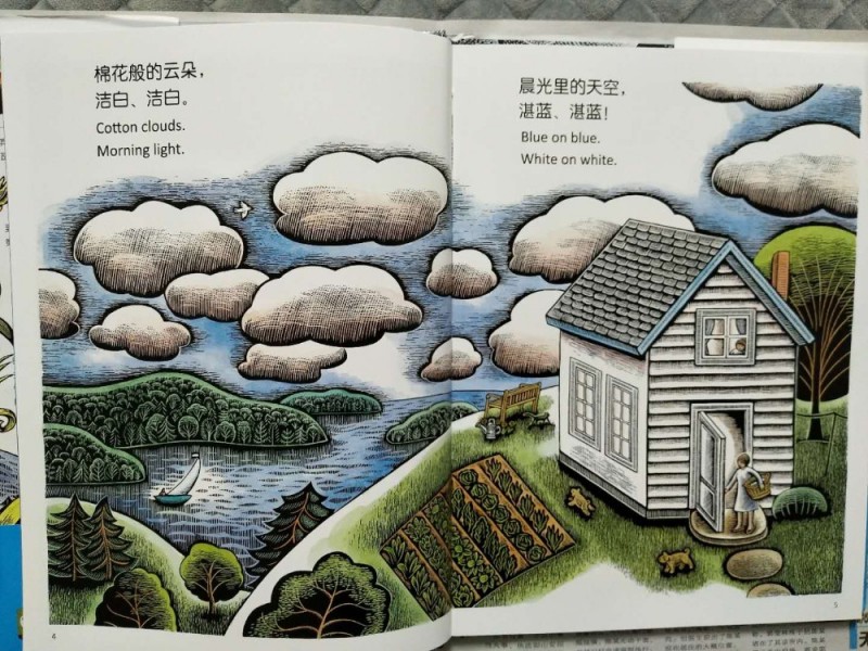 ——《Blue on Blue》 《Blue on Blue》,看到这本书就被深深吸引了,书名很特别,封面画风也非常有特色,感觉非常有质感。蓝蓝的天,洁白的云,温馨美好的农舍、绿油油的菜地,可爱的小猫小狗,在门前草地上跳绳嬉戏的小女孩......好一副美丽的田园风光! ![]() 这样的图画不知道是多少现代人梦寐以求的世外桃源。儿子看到封面也被深深吸引了,不由自主地说:“我也好想在这里生活啊!” ![]() 看了简介才知道原来这是一本儿童英语韵律启蒙绘本。一直不知道给孩子选择什么样的英语启蒙绘本,收获这本书真是非常开心!再来看看,原来这本书还是《波士顿环球报》大奖绘本呢!作者是美国童诗作家戴安娜.怀特,插画作者是凯迪克金奖得主贝斯.克罗姆斯。哇,强强联合的大奖绘本啊,更期待书中的内容了! 陪孩子一起细细品完这本书,真是感觉超美,超赞!书中语言韵律优美,诗意盎然;插画浪漫优美,将自然风光描绘得如诗如画。 更赞的是,这本书还是英汉双语版本,英语原文用词精湛,汉语翻译也不逊色,无论是英语原文还是中文翻译都非常朗朗上口。极具韵律美和节奏感的诗文和精美绝伦的插画搭配非常完美,每一页都堪称艺术杰作。 ![]() ![]() ![]() ![]() ![]() 这本书描绘的是一场夏日风雨降临前后的情景,背景是海边的田园农舍。整本书的色调淡雅大气,给人一种非常高级的感觉,看得人赏心悦目。绘者通过细腻的笔触为我们描绘了暴雨来临前的温馨美好,和暴雨降临时的震撼场面和雨过天晴后的风和日丽。整本书的插画非常有层次感,看过这些插画会让人感觉如同身临其境。 "Cotton clouds . Morning light . Blue on blue . White on white ."/"棉花般的云朵,洁白、洁白。 晨光里的天空,湛蓝、湛蓝!”短短十来个单词就把恬静美好的夏日清晨描绘得如歌如画。 “Thunder ! Lightning ! Raging, roaring. Rain on rain on rain is pouring . Streaming, gushing, Racing , rushing. Rain on rain on rain . Pounding , hounding , noisy-sounding . Dripping ,dropping. Never stopping .”英文本身就是非常有乐感的,作者又用了这么多叠加的单词,虽然极其简短,却极具表现力,更是极尽韵律感和节奏感。将暴雨瓢泼的场面刻画得淋漓尽致,虽然是无声的文字,却让人真切感受到狂风暴雨的来势汹汹。 汉语翻译也非常精彩:“电闪!雷鸣!轰隆隆!咔嚓嚓! 瓢泼大雨,倾盆而下。哗啦哗啦,急促疯狂。瓢泼大雨,倾盆而下。噼里啪啦,叮叮咚咚。哗啦哗啦,不停地下。” 真不愧是一场用文字演绎声音的夏日风雨,一首富有韵律和节奏的英语童诗! 英语作为一门外语,一直被很多中国孩子所畏惧,觉得太难学。其实,学习语言最重要的是兴趣,还有多说多听多接触。这样的英语韵律启蒙绘本一定会让孩子们感受到英文趣味和魅力,打消对英语的恐怖。英文不好的家长也完全不用担心,扫描图书封底的二维码可以免费收听地道的英语音频。 ![]() 可以让孩子一边看书一边听音频,也可以让孩子对照着绘本跟着音频一起读,还可以先看书再听音频。不管是哪一种阅读方式,都会让孩子们感受到不一样的阅读体验。 充满节奏感和韵律感的音频,如诗如画的绘本,接触完这本书,相信孩子们一定会改变对英语学习的态度。 本作品未经作者许可不得转载,转载请征求作者意见。擅自转载使用,将保留追究其法律责任的权利! 个性签名