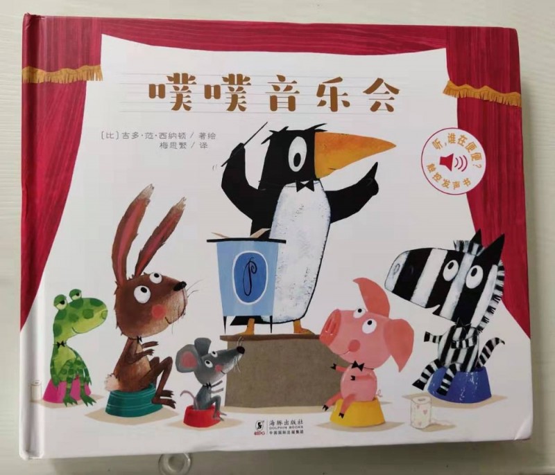 《噗噗音乐会》,看到这本书的封面和简介,就被深深吸引了,特别好奇书中的内容。触控发声书,还真是第一次接触,儿子也特别期待。收到书果然非常惊喜!