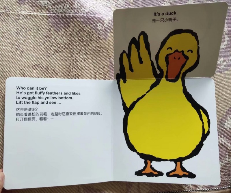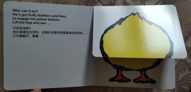 ![]() 《猜猜是谁的屁股?》,一看这个书名就知道这本书一定很有趣!屁股,臭臭,小朋友们一看到这两个词语一定会忍不住先笑起来。而猜谜游戏更是小朋友们的大爱了。那么,就让我们和孩子们一起去《猜猜是谁的屁股?》里面猜一猜一看,和孩子一起比赛看谁先猜对吧! 先从封面开始吧!瞧瞧,这粉粉的、肉嘟嘟的大屁股,还有一条微卷的小尾巴,这是谁的屁股呢?对了!这是小肥猪的屁股。 继续翻—— 这是谁的屁股啊?只看屁股还真不好猜,那就让我们先找找别的线索:圆圆的耳朵,还有一条又细又长的尾巴......这是什么小动物呢?翻开折叠页看看吧!哈哈,原来是小老鼠啊! 继续继续—— 这个屁股又是谁的呢?耳朵长长的,还能竖着立起来,尾巴毛茸茸的。这是谁呢?兔子?打开折叠页,当当当当,果然是可爱的小兔子哦! ![]() ![]() 哇,这只屁股好可爱啊!金黄色的,还是桃心形状的,上面还长着蓬松的羽毛,一对脚掌也很有特点.....猜猜这是谁呢?鸭子?小鸡?打开折叠页看看吧!哈哈,原来是笑眯眯的小鸭子啊! ![]() 接下来这个又是谁的屁股呢?长着一对红耳朵,尾巴长长的......,这个有点难啊,是谁呢?打开折叠页看看吧,原来是调皮的小猴子啊!这个游戏可真好玩,继续继续! ![]() 耳朵尖尖的,还长着一条毛茸茸的大尾巴,这个屁股是谁的呢?狗?狐狸?傻傻分不太清楚啊! ![]() 打开折叠页,答案揭晓:果然是小狐狸啊! ![]() 接下来这个就好猜了:身躯庞大,还有一对大大的、呼扇呼扇的大耳朵和一条长着硬毛的尾巴。大象!一定是大象!打开折叠页验证一下:是大象没错! “太好玩了!”儿子越猜越欢,开心得停不下来。好了,最后一个,这是谁的屁股呢?小屁股胖乎乎、圆鼓鼓的,还穿着一条白色的小内裤呢!这个可真是难到我们了啊! ![]() 打开折叠页看看吧。呀!原来是个胖乎乎的小娃娃啊!果然不到最后都不知道结局有多精彩,哈哈! ![]() 这本书开本不大,非常适合小朋友小手抓握,贴心的圆角设计细心呵护宝贝们的安全问题。内页全部采用硬纸壳印刷,履光膜防水页面设计,脏了可以用湿布反复擦拭。 ![]() 书中的上下折叠翻翻页设计也是互动有趣,非常吸引小朋友积极阅读。好玩的猜猜乐游戏既锻炼孩子们的观察力和思维能力,更是带给小宝贝们完全不一样的阅读体验,让孩子们爱上图书,爱上阅读! 更赞的是这本书还是双语版的,中英双语对照。中英双语都非常简洁上口,对孩子的双语启蒙都非常有帮助。 另外,这本书还是本非常适合低龄小朋友的认知启蒙科普书呢,书中一共涉及到七种小动物。作者通过互动折叠页和猜猜游戏设计,将这七种小动物的外表生理特征巧妙地蕴含其中,让孩子们在游戏中自然而然地去观察和识别这七种小动物,清晰地了解这七种小动物的外表特征。而比较有探索欲望的小宝贝们还会追问更多关于这七种小动物的科普内容,家长们正好可以借助这个机会给小宝贝们拓展一下动物科普。 ![]() 这样一本小书可真的是难得的双语启蒙游戏绘本呢!既好看又好玩,同时兼顾双语启蒙和动物科普认知,真的是值得推荐! 本作品未经作者许可不得转载,转载请征求作者意见。擅自转载使用,将保留追究其法律责任的权利! 个性签名