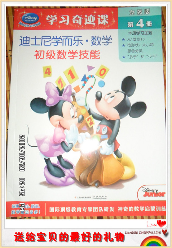 得到《迪士尼学而乐•数学》试读通过的消息就令我很兴奋,因为宝贝最喜欢看动画片《米奇妙妙屋》,最喜欢里面的图案。我想这是送给宝贝的最好的礼物。
