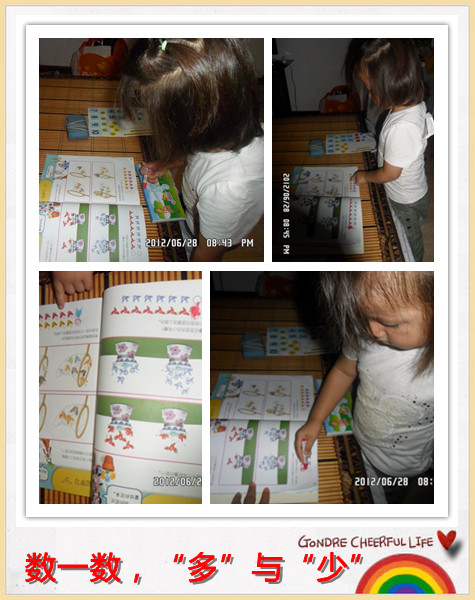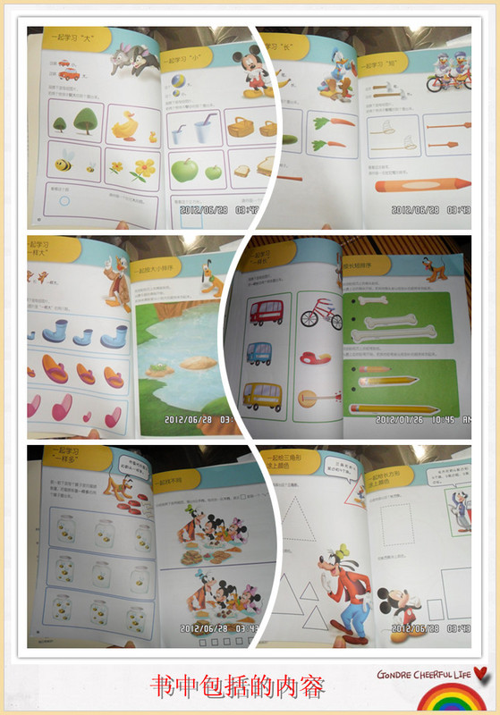 ![]() 快递公司帮我送来了这本书,打开上面显示的是女孩版,简单翻阅了一下,完全就是以《米奇妙妙屋》的主人公编排的这本书,宝贝一定很喜欢。去接宝贝的时候,我故意给宝贝说:“今天妈妈要送给你一份你最喜欢的礼物。”宝贝很好奇很开心的说:“是什么礼物啊?”我故意逗宝贝,“回到家你就知道了。”宝贝加快了脚步。 ![]() 看到这本书,真是开心极了,宝贝就开始翻阅起来。 这本书对于宝贝来说,基本上都难不倒,以前在成长生活的过程中,不自觉的已经给宝贝贯彻数字概念,宝贝可以做到轻轻松松学数学。宝贝现在已经能分辫出:长方形、三角形、圆形图案。 接着我们又一起学习一个有关分类的小故事,让宝贝认识“多”和“少”。“大与小”,“长与短”。 通过一些实例,让孩子们学习“大”,与“小”,宝贝不用教自己已经可以辩别了。只是动手画图形还不行。 接着又通过一些实例图案,认识“一样多”。又一起来按大小排序。这个比较有趣的是可以找到书后面配有贴画,然后给它按序从小到大排列好。这时候,为了让孩子更好的贴上去,他们把石头设置了,孩子自然就按着上面的大小贴。 本书又通过实例学习让宝贝掌握了“多”和“少”,让宝贝自己来数数,比较一下看看哪个多,宝贝用小手指指着图案很认真的数,最终选择正确的答案。 ![]() “找不同”是宝贝的强项,宝贝也最喜欢。两幅图中有五处不相同的地方,宝贝都能在短暂的时间内统统找了出来。 接着又一起学了“长”和“短”。这也难不倒宝贝。宝贝用铅笔不熟悉的画了标的线条,因为基本上不握笔,画的不直。 一起学习“一样长”,这是通过不同颜色的或是不同的物体,让宝贝找出一样长度。通过这个实例,即可以让宝贝巩固一下对颜色和物体的认识,还能快速学习长度的概念,真是学有所乐啊! ![]() 按长短排序,这个也很简单,宝贝已经掌握。 接下来就是动手给圆形、正方形、三角形、长方形涂颜色,描形状,分类,最后用这几种基本的形状做动物拼图,通过这几节的学习,即培养了孩子的绘画兴趣,锻炼了孩子的手眼协调,最终开发了宝贝的想象力进行用简单形状拼图。 编者又把以前的章节通过一个有趣的小故事,通过有趣生动的画面和文字,进行巩固学习“大”、“更大”、“长”、“三角形”“最大”、“短”、“圆”. 数数是孩子必须掌握的知识,按顺序从1数到10,这个年龄段的孩子基本上都掌握了,但若按倒序的方法来数,估计对现在的孩子来说有点难度。这本书就是让孩子通过粘贴的游戏和画面,让孩子轻松掌握倒序的方法。孩子贴好之后,不自觉的就像讲小故事一样把它讲出来,很快就记住了。 给数字配对环节,孩子看着前面的数字,再数着左边的图案个数,来贴数字,几乎都不用我们作家长的帮忙就能独立完成了。 一起学习比较多少、学序数、学习排列规律、给图片排序,增加了难度,我们可以通过有趣的图案引导孩子一起学习。 最后通过一个篝火晚会游戏对本书作了个总结,让孩子能游戏中检验自己掌握的程度。 书的最后还配有参考答案,对本书的每一章节掌握的程度可以用贴画星星来作标记,以便于加强巩固学习。 本书还有拓展活动,通过平常的游戏来更好的学习数学,让孩子在玩中自主的轻松学习数学! 《迪士尼学而乐•数学》设计的太好了,简直是一个完美的工具,能帮助孩子在数学学习中脱颖而出,在入学前就全面培养优异的数学学习能力。感觉孩子学习数学是这么轻松的一件事,基本上都是孩子一个人完成,宝贝又特别感兴趣,有时间就想学习这本书,因为即可以动手贴,又能被书中的画面吸引,我强烈推荐这本书! 本作品未经作者许可不得转载,转载请征求作者意见。擅自转载使用,将保留追究其法律责任的权利! |