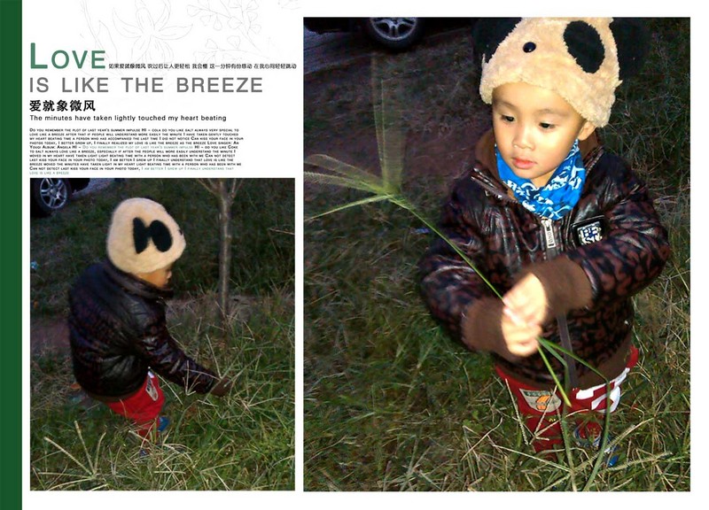昨天晚上放学后回家的路上经过小区里的草从的时候谦谦看到了一只小狗在草地里玩耍,小家伙立刻被吸引住了,站着不动的瞧着小狗。后来又来了一只大一点的狗,两只狗狗竟然打起架来了,谦谦看着热闹愣是不肯离开。晚上的风特别的大,小家伙丝毫不受影响的,就是看着两只小狗好玩呢,后来狗狗们都跟着主人回家了,谦谦还是不肯跟着妈妈走,非要在草从里摘根草玩,妈妈也懒得理你了,妈妈在前面先走了,小家伙一个人在草从里玩吧......