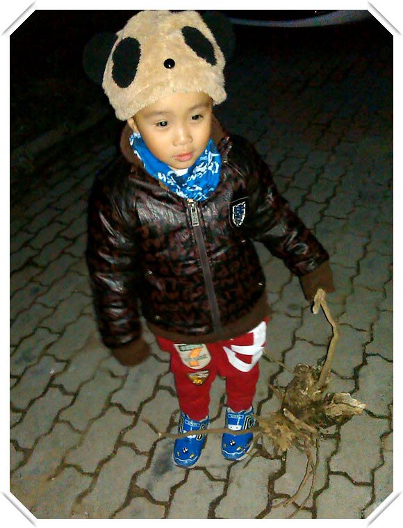 晚上8点多钟的时候小家伙又想起树根来了。当时妈妈还没注意呢,